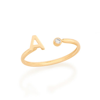 the perfect gift collection is hereTo celebratechristmas andâ all that it represents: the friendship, experiences, good timesâ and, of course, the hopes and dreams for the future. gold plated adjustable skinny ring featuring a initial on one end and one (1) white cubic zirconia measuring 2mm. | material: 18k gold plated. "
