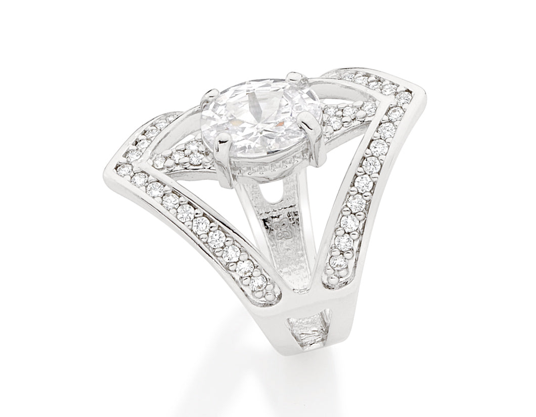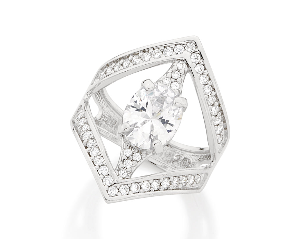 RHODIUM PLATED RING WITH CRISTALS AND ZIRCONIA