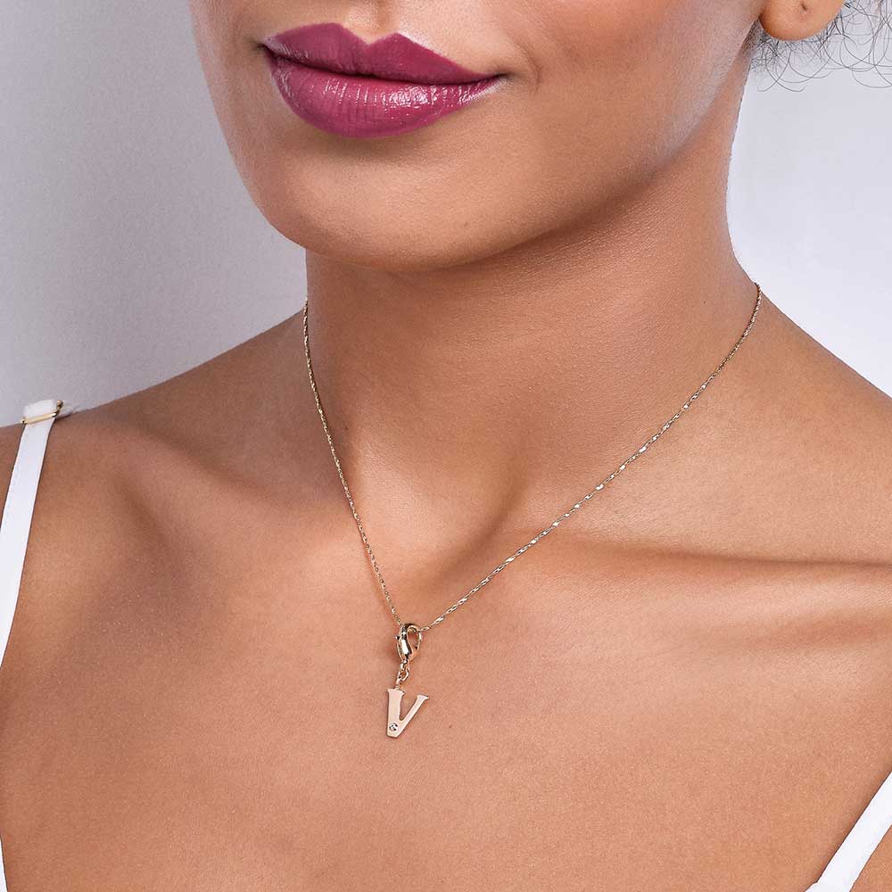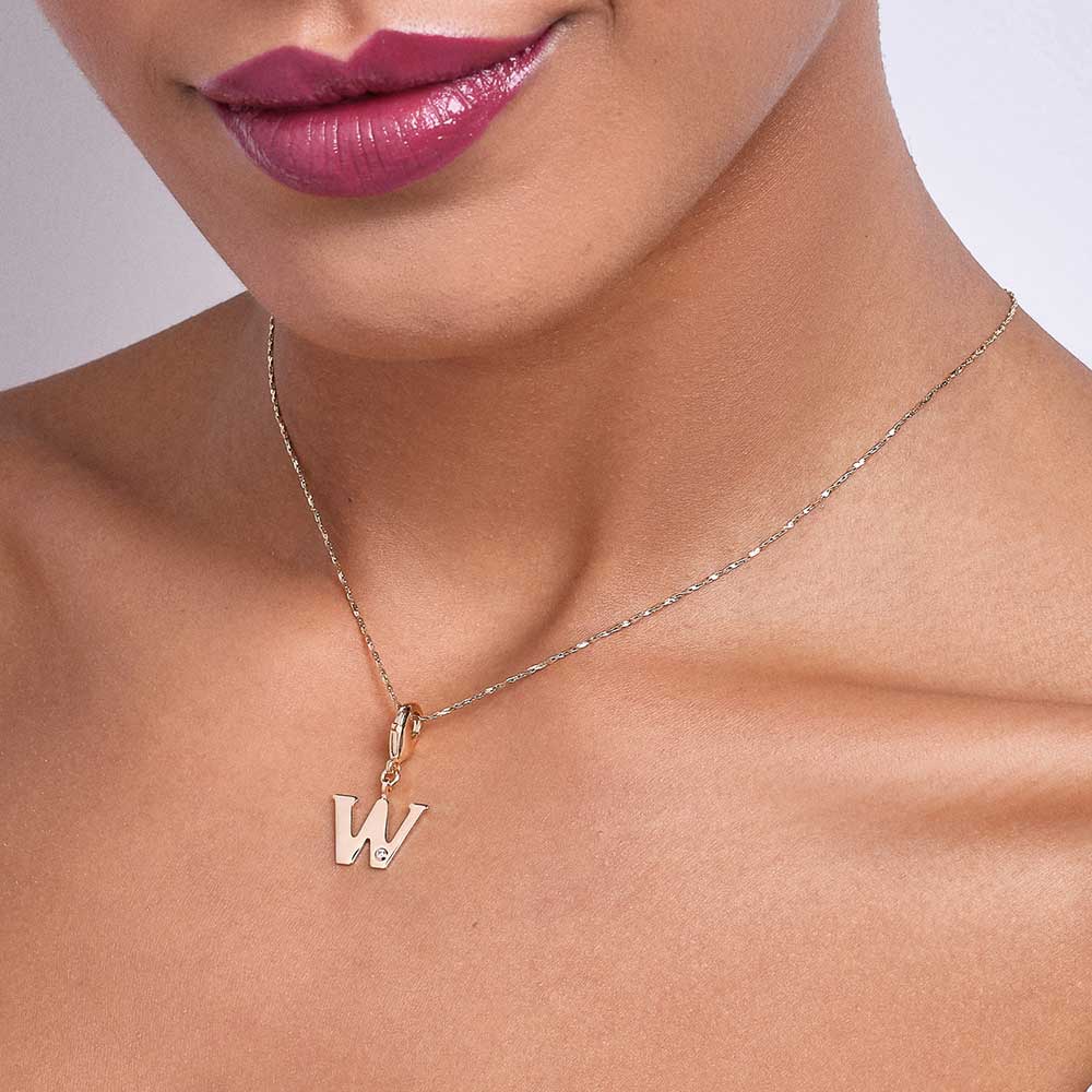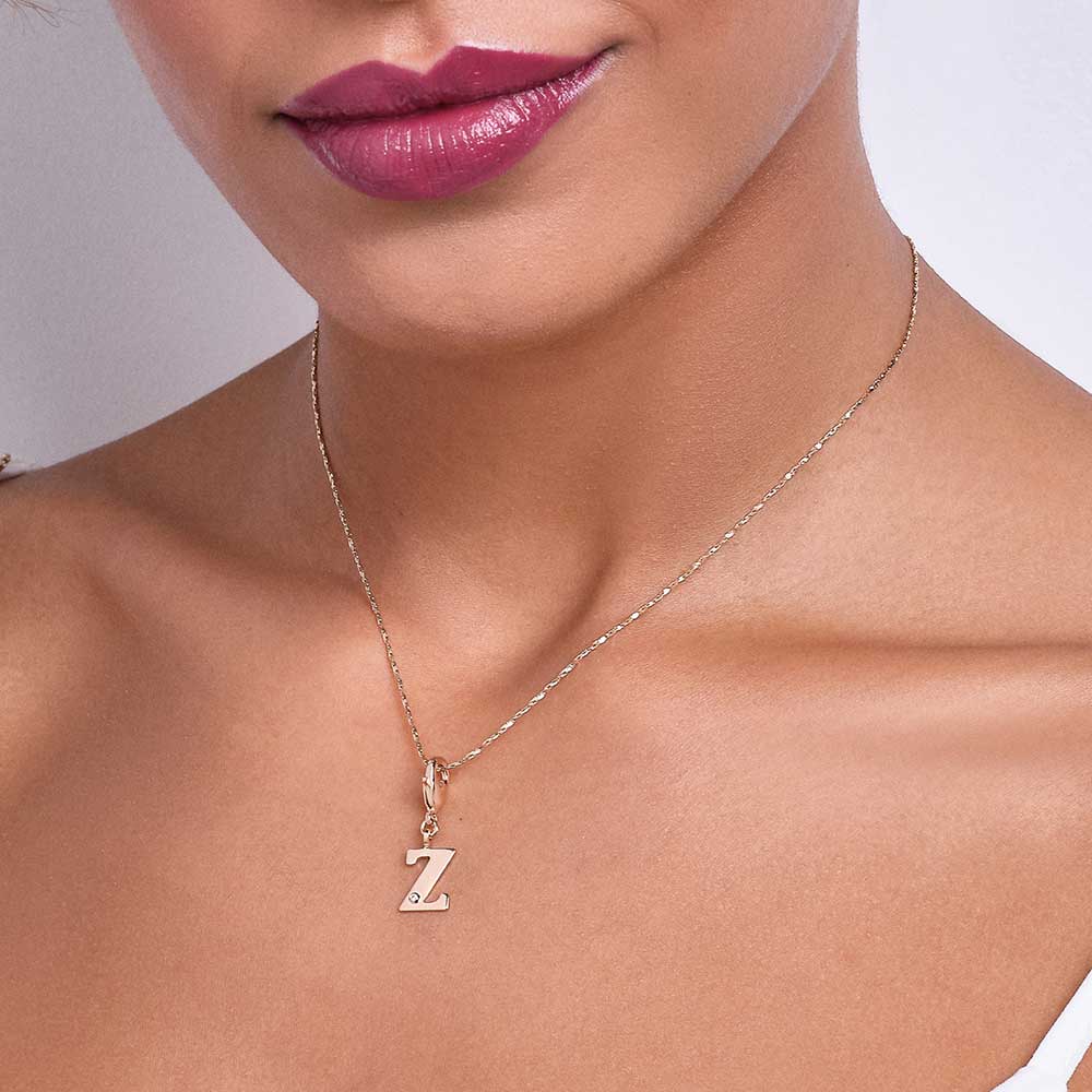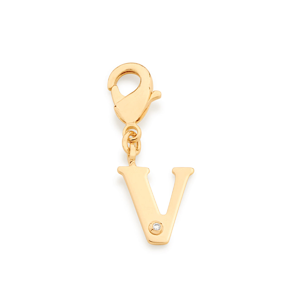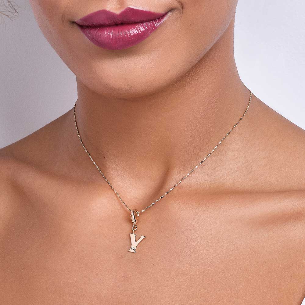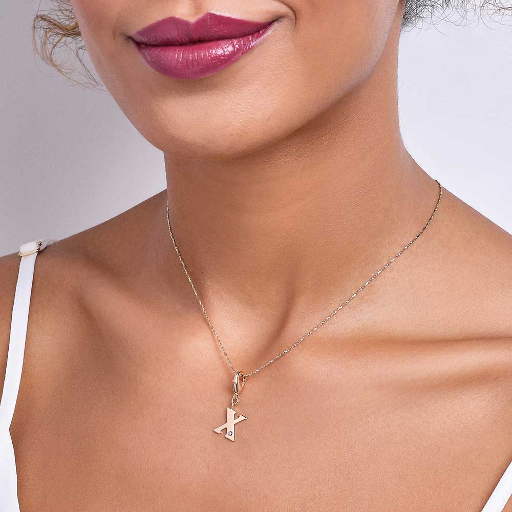 In order to celebrateMothers day, Rommanel has created a completely new collection that reflects a Mothers day love towards her child. gold plated letter pendant with a modern look studded one (1) white zirconia measuring 1.25mm and a lobster clasp. | size: 2.7cm x 1.2cm (1.06in x 0.47in) | stone: zirconia. | material: 18k gold plated. "