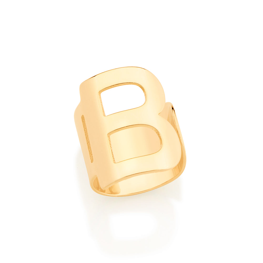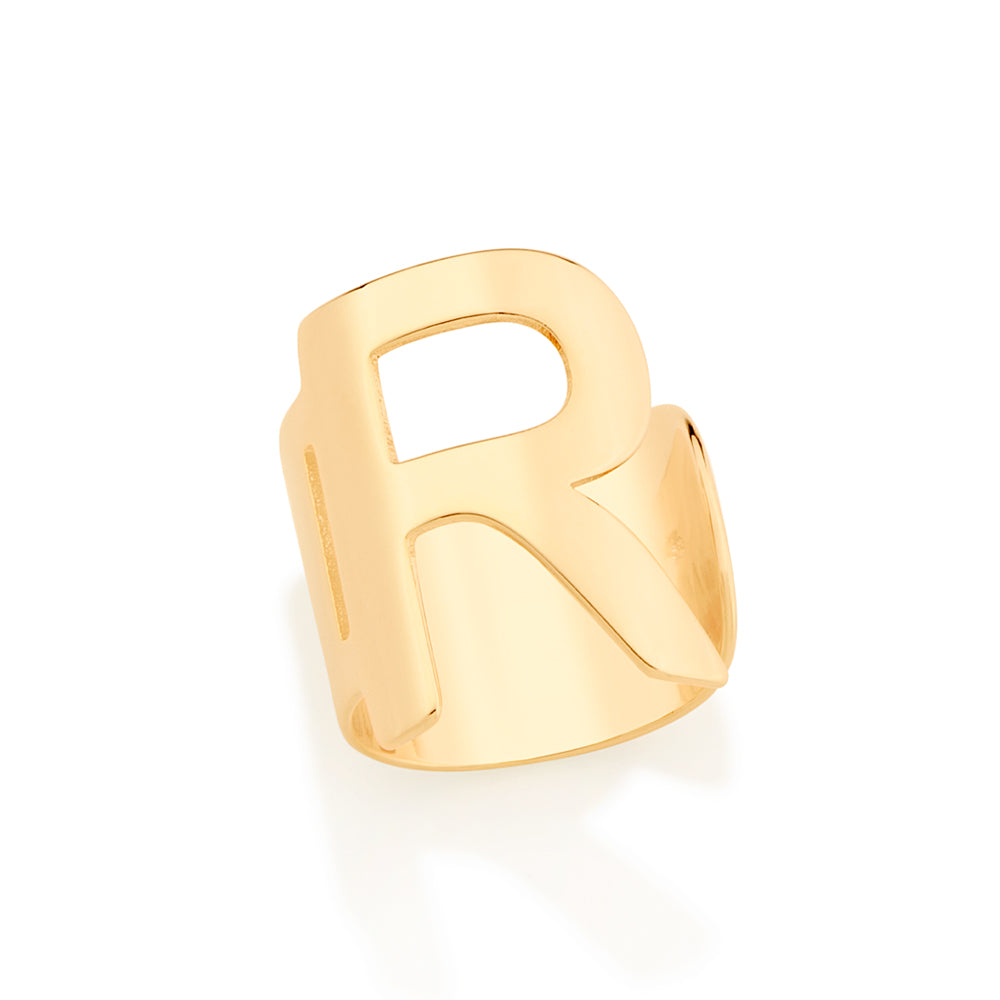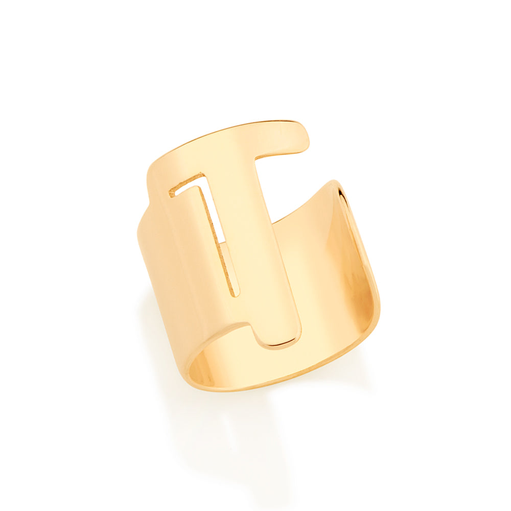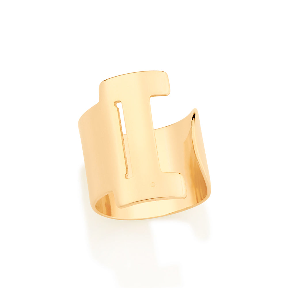 Rommanel and brazilian acrtess, giovanna antonelli, developed for her specially to honor women throughout the world. this collection contains gold plated and rhodium plated jewelry for every style. gold plated bold maxi ring in the shape of a letter. | material: 18k gold plated. (licensed jewelry capsule collection gio antonelli - for her)"