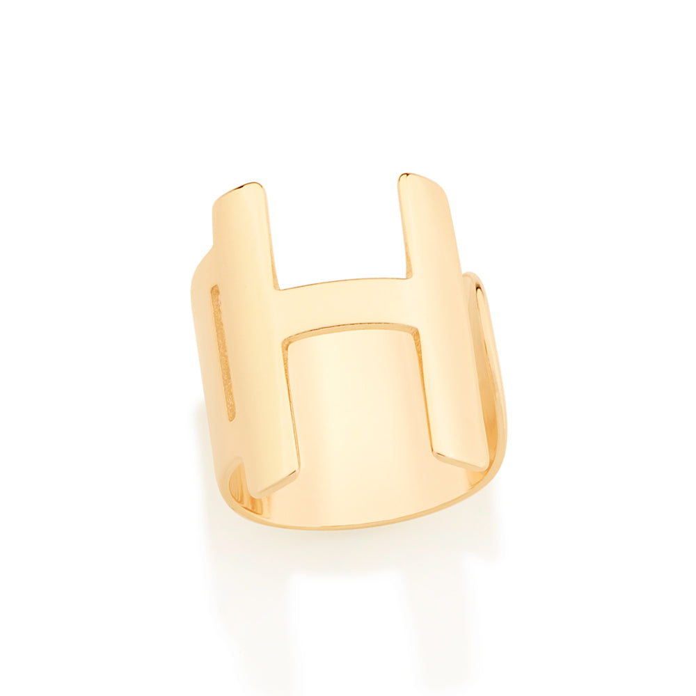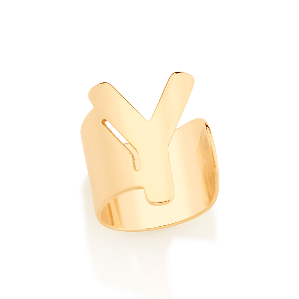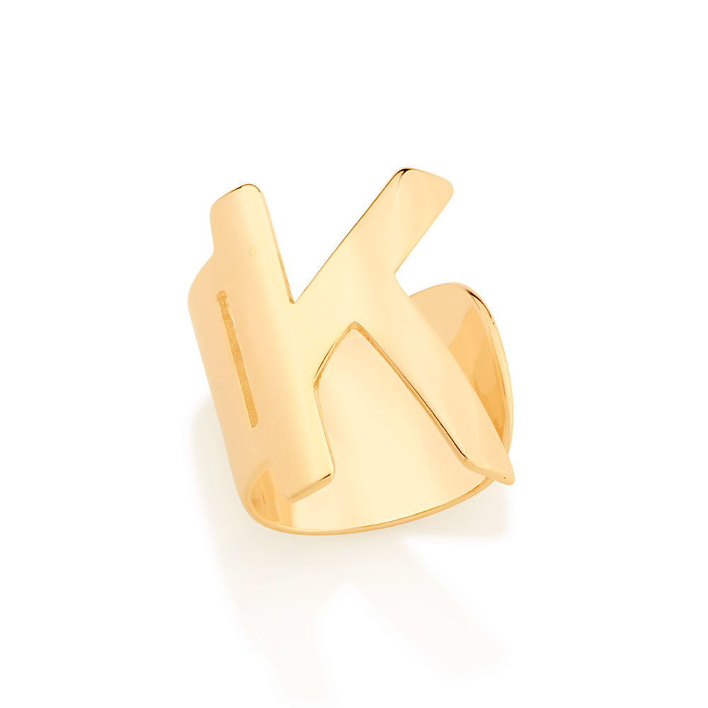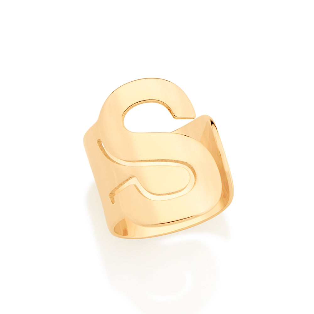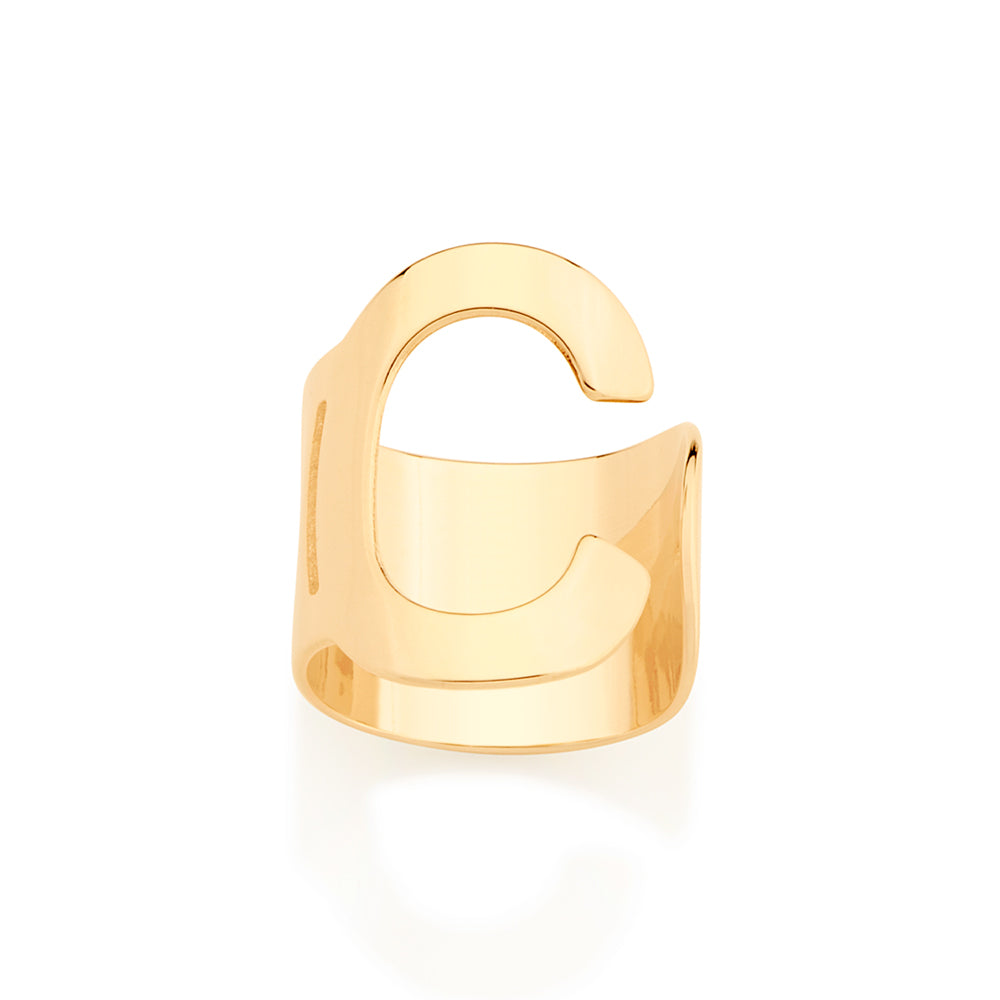 Rommanel and brazilian acrtess, giovanna antonelli, developed for her specially to honor women throughout the world. this collection contains gold plated and rhodium plated jewelry for every style. gold plated bold maxi ring in the shape of a letter. | material: 18k gold plated. (licensed jewelry capsule collection gio antonelli - for her)"