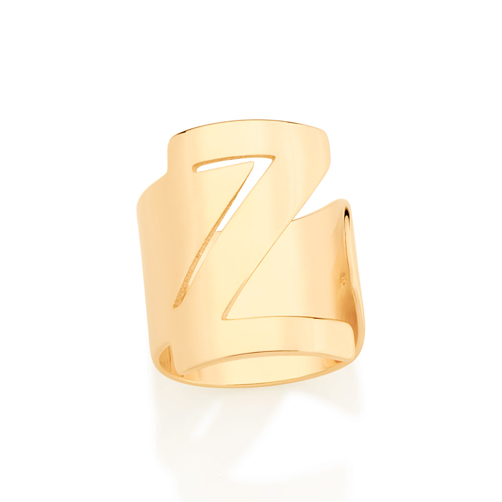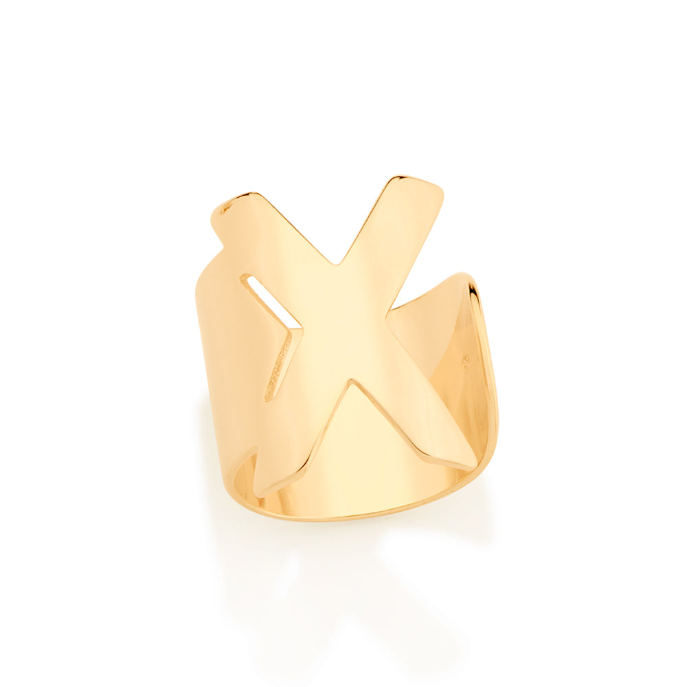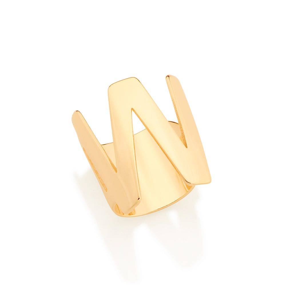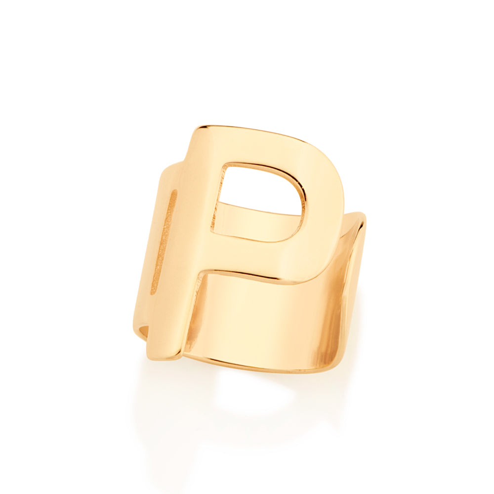Rommanel and brazilian acrtess, giovanna antonelli, developed for her specially to honor women throughout the world. this collection contains gold plated and rhodium plated jewelry for every style. gold plated bold maxi ring in the shape of a letter. | material: 18k gold plated. (licensed jewelry capsule collection gio antonelli - for her)"
