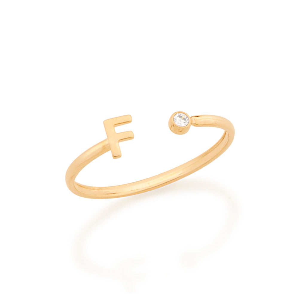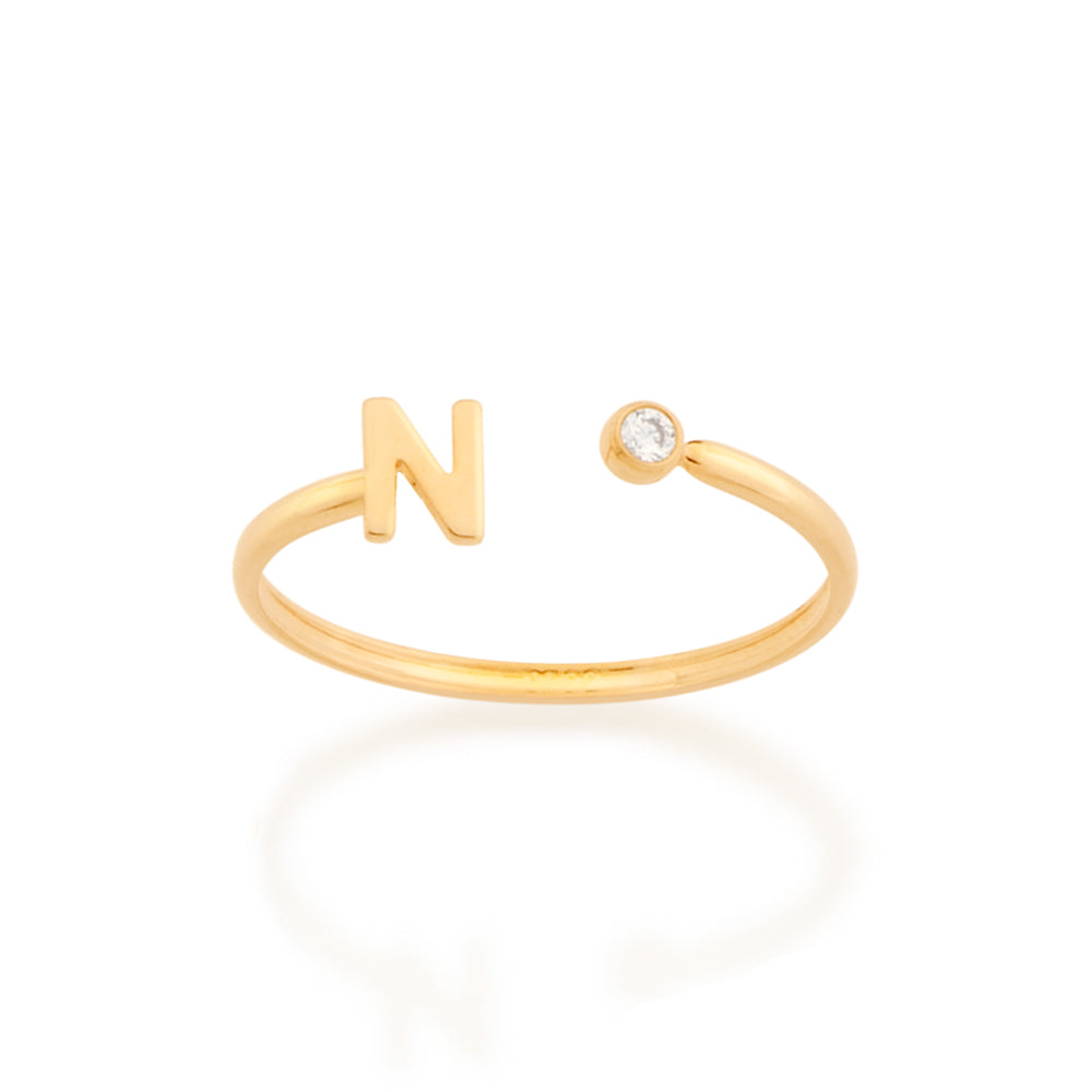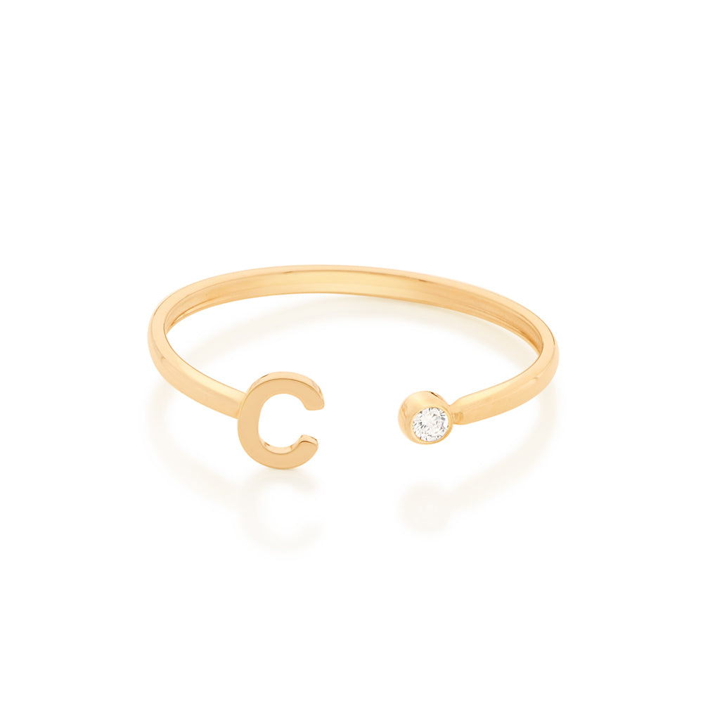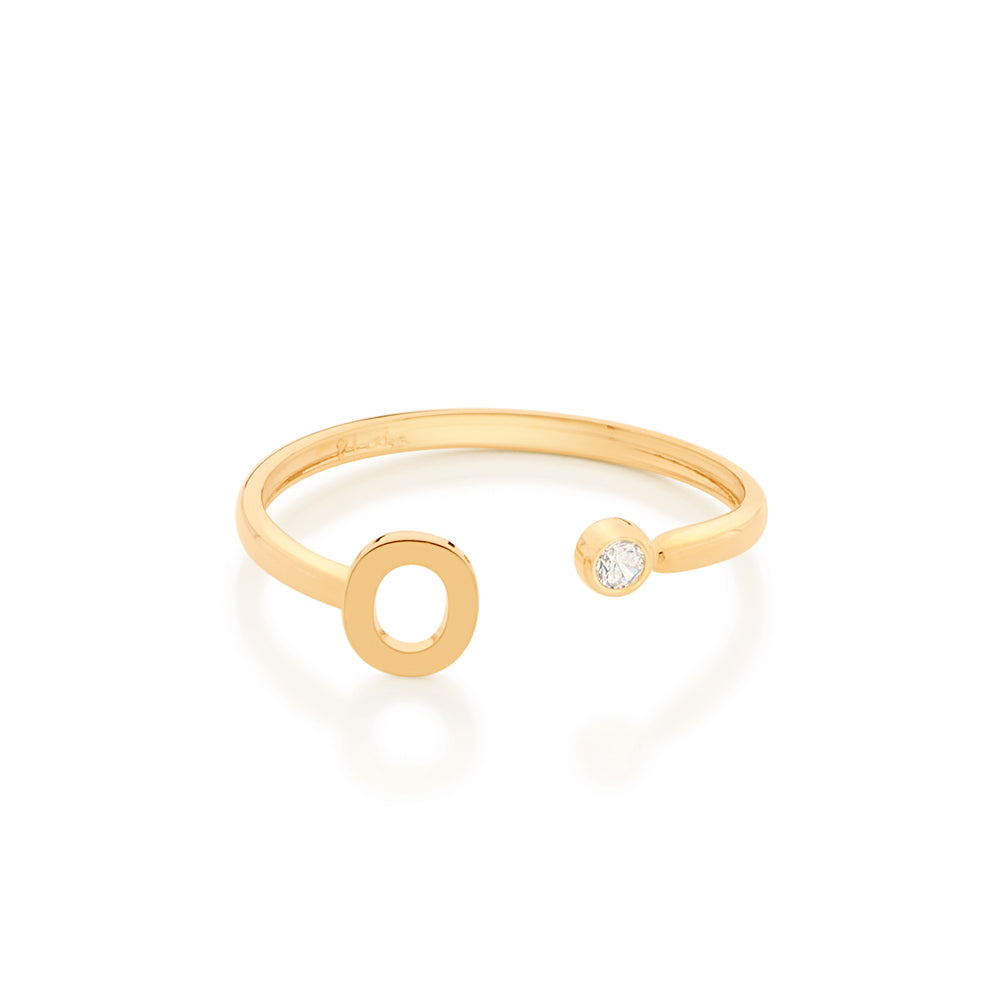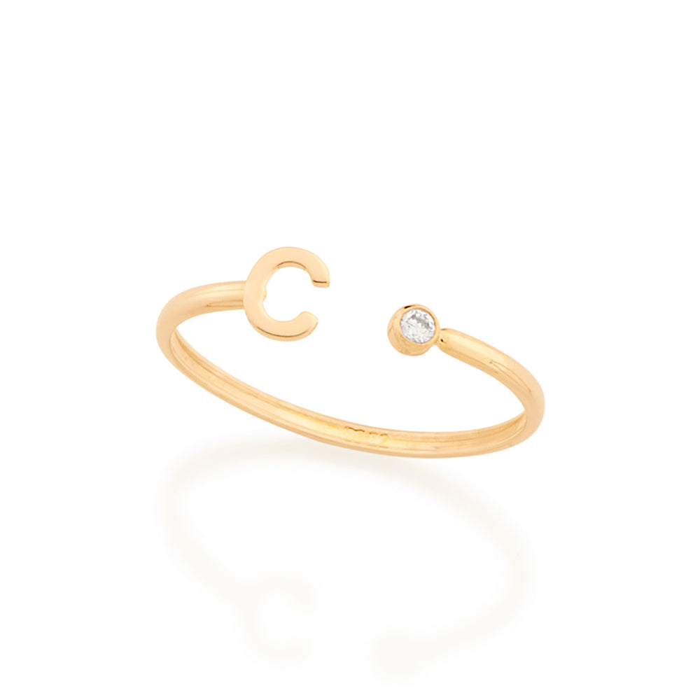 the perfect gift collection is hereTo celebratechristmas andâ all that it represents: the friendship, experiences, good timesâ and, of course, the hopes and dreams for the future. gold plated adjustable skinny ring featuring a initial on one end and one (1) white cubic zirconia measuring 2mm. | material: 18k gold plated. "