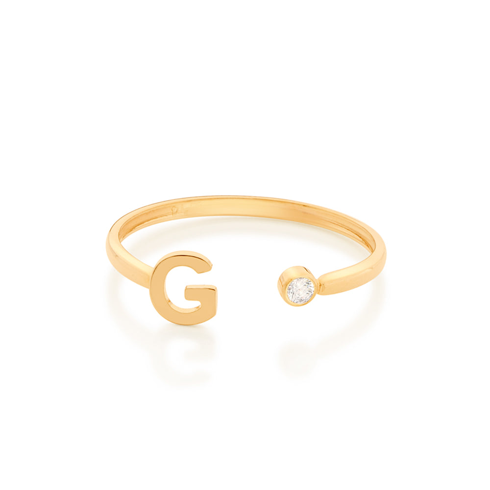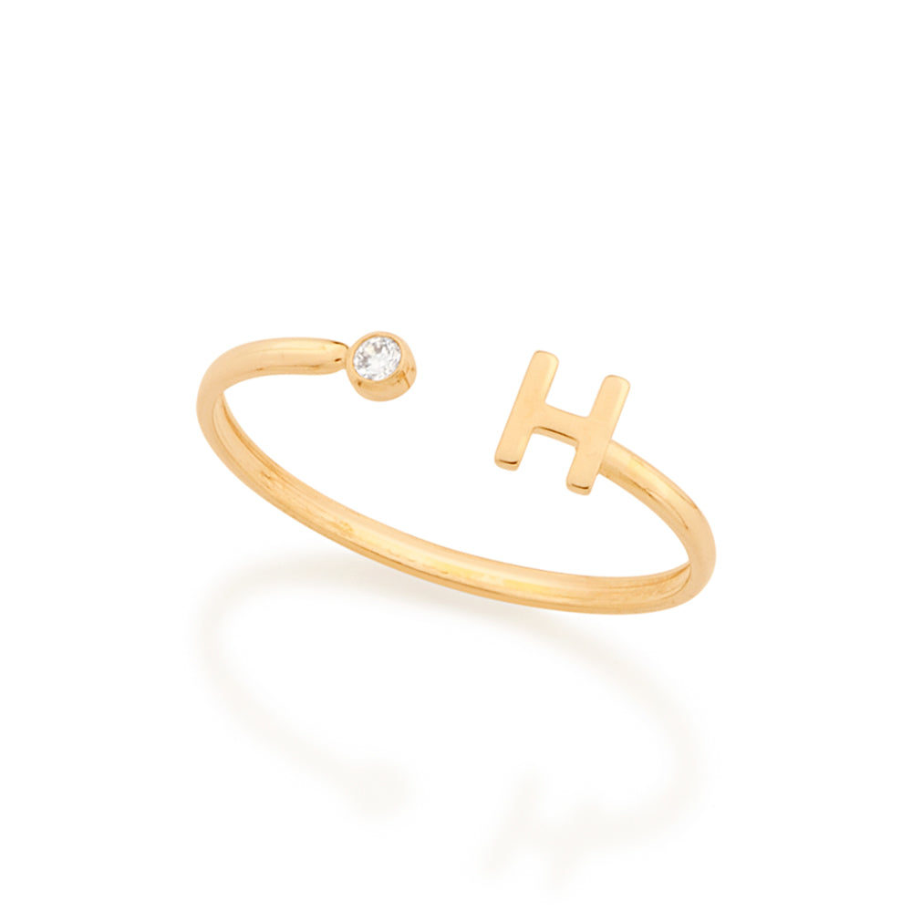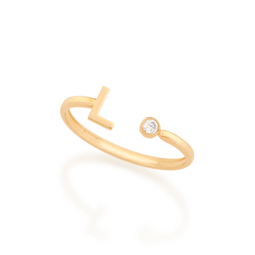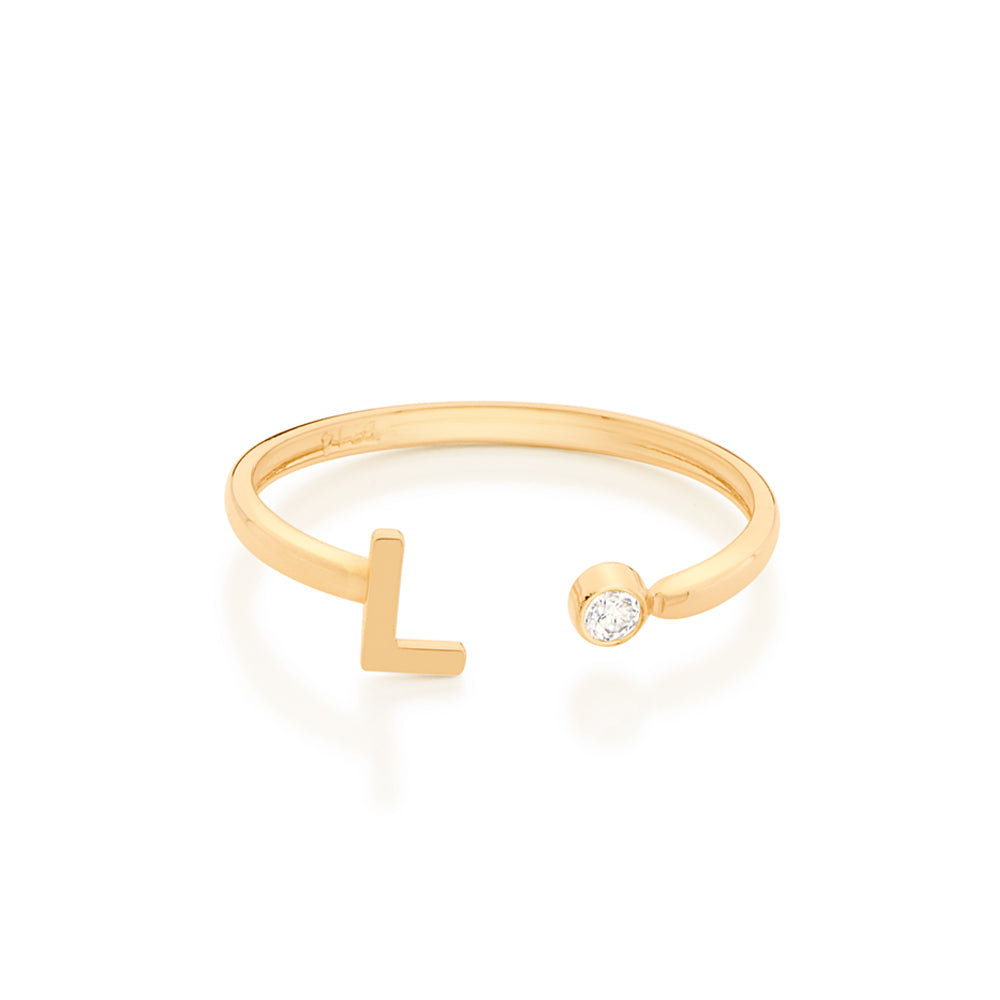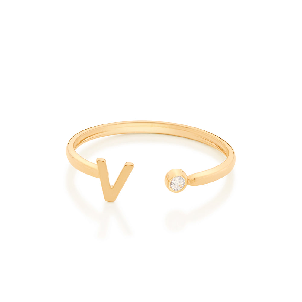 the perfect gift collection is hereTo celebratechristmas andâ all that it represents: the friendship, experiences, good timesâ and, of course, the hopes and dreams for the future. gold plated adjustable skinny ring featuring a initial on one end and one (1) white cubic zirconia measuring 2mm. | material: 18k gold plated. "
