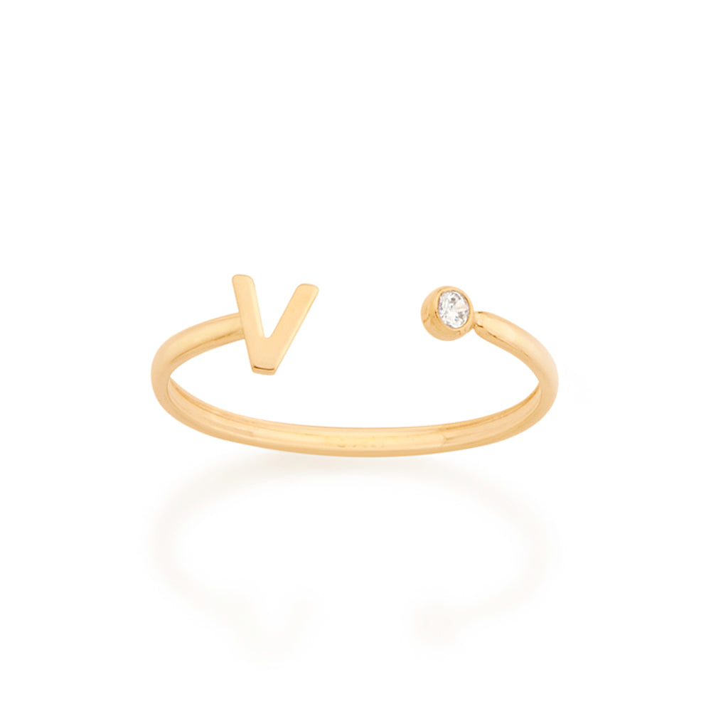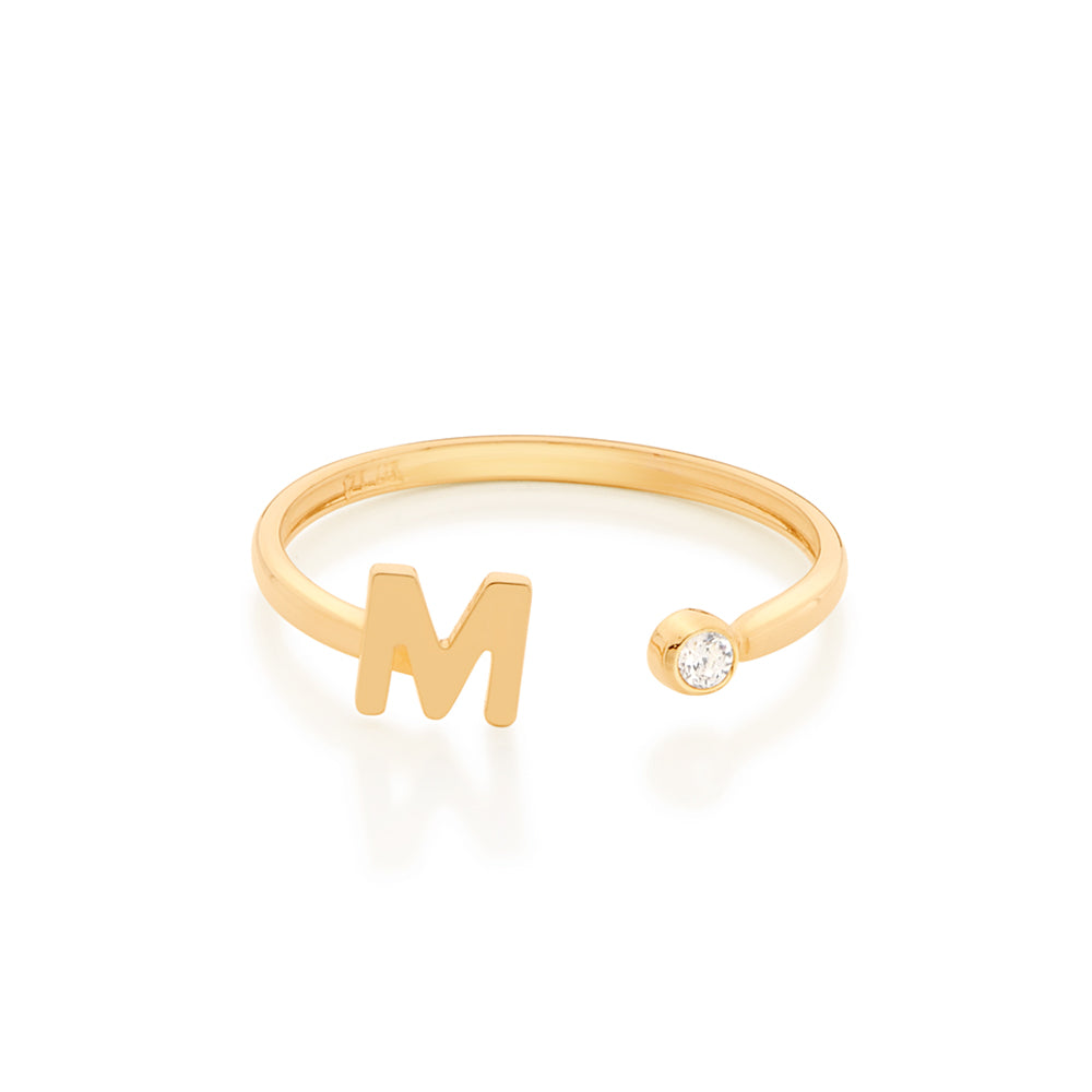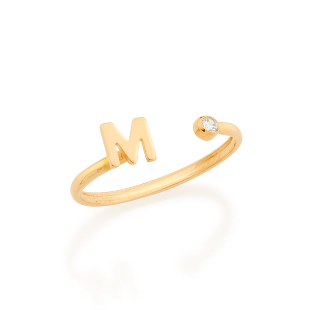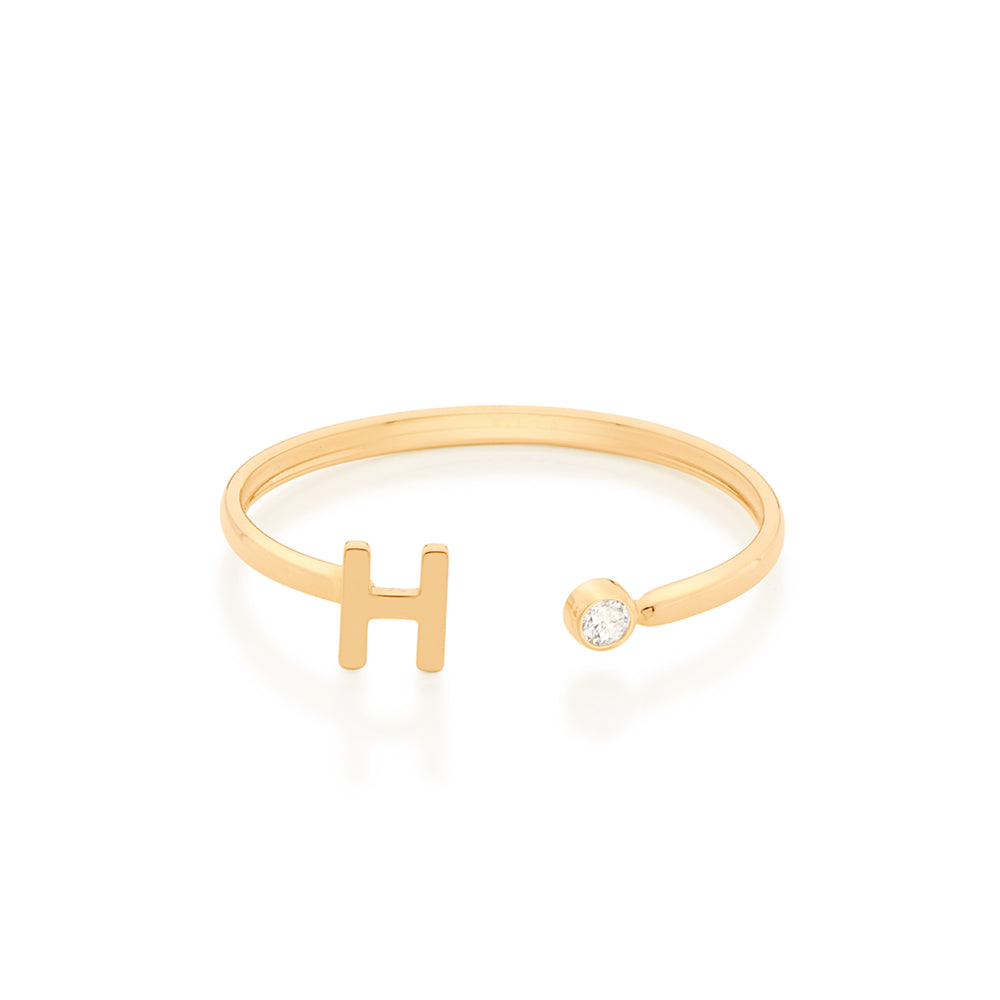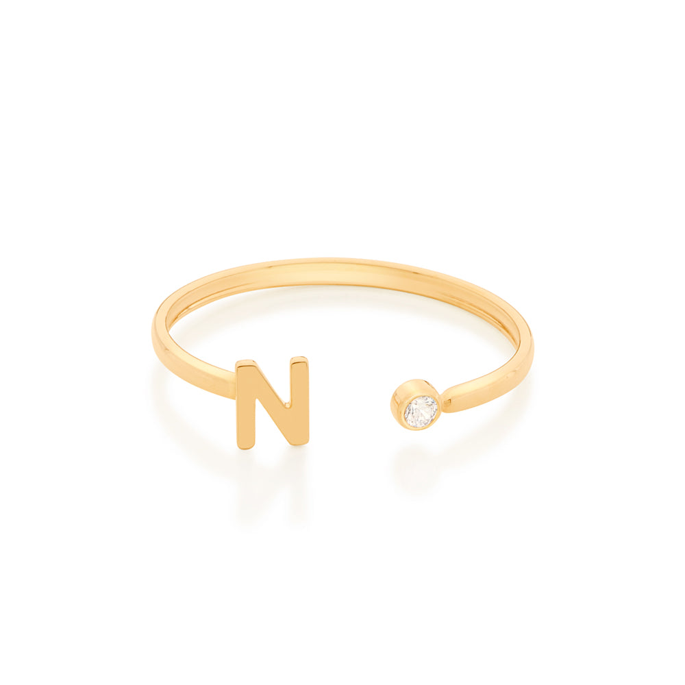the perfect gift collection is hereTo celebratechristmas andâ all that it represents: the friendship, experiences, good timesâ and, of course, the hopes and dreams for the future. gold plated adjustable skinny ring featuring a initial on one end and one (1) white cubic zirconia measuring 2mm. | material: 18k gold plated. "