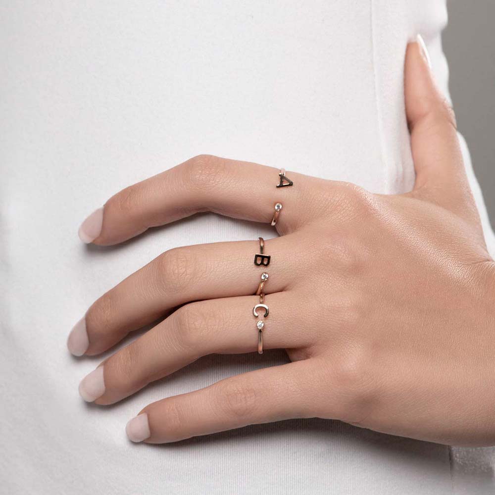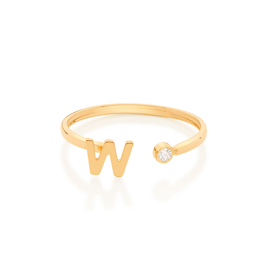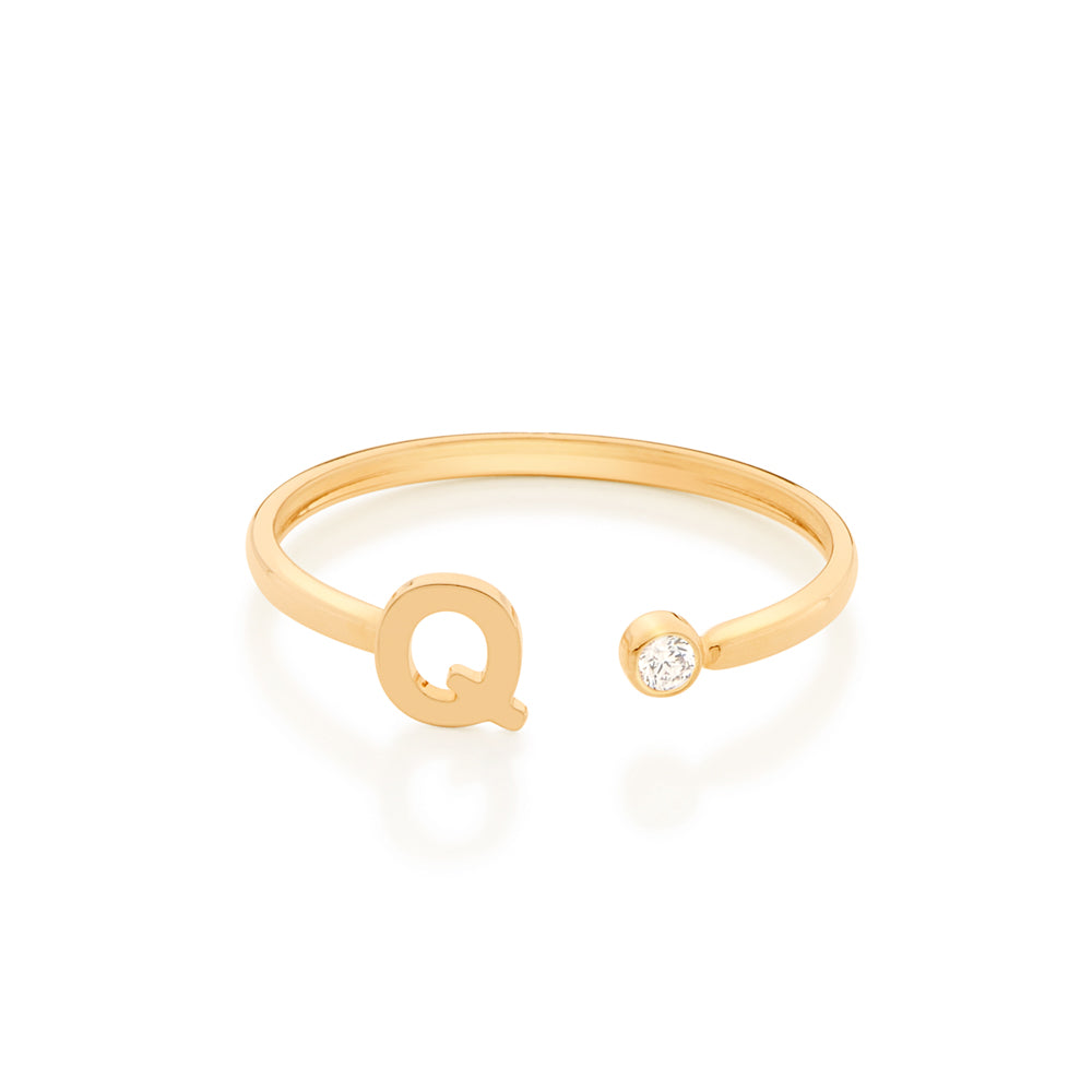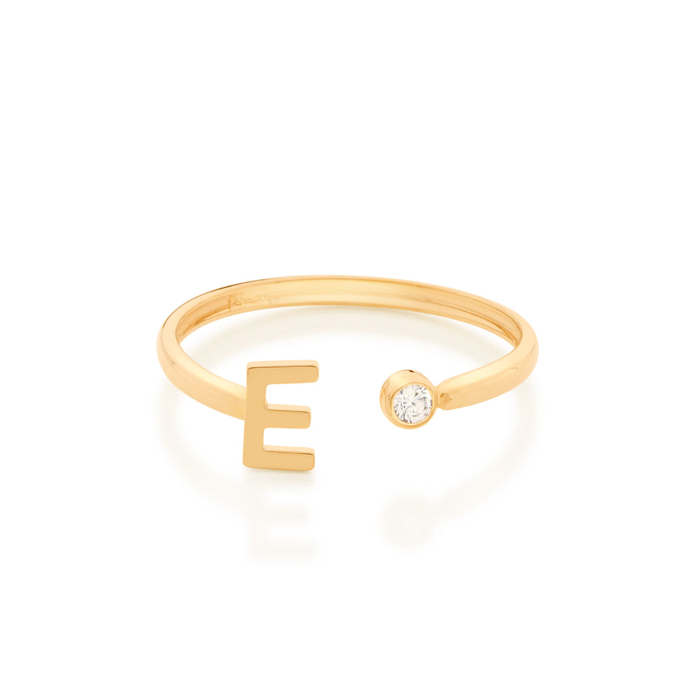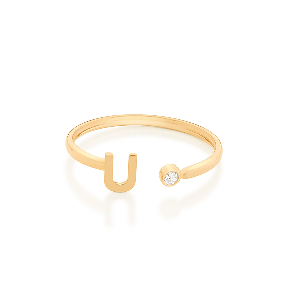 the perfect gift collection is hereTo celebratechristmas andâ all that it represents: the friendship, experiences, good timesâ and, of course, the hopes and dreams for the future. gold plated adjustable skinny ring featuring a initial on one end and one (1) white cubic zirconia measuring 2mm. | material: 18k gold plated. "