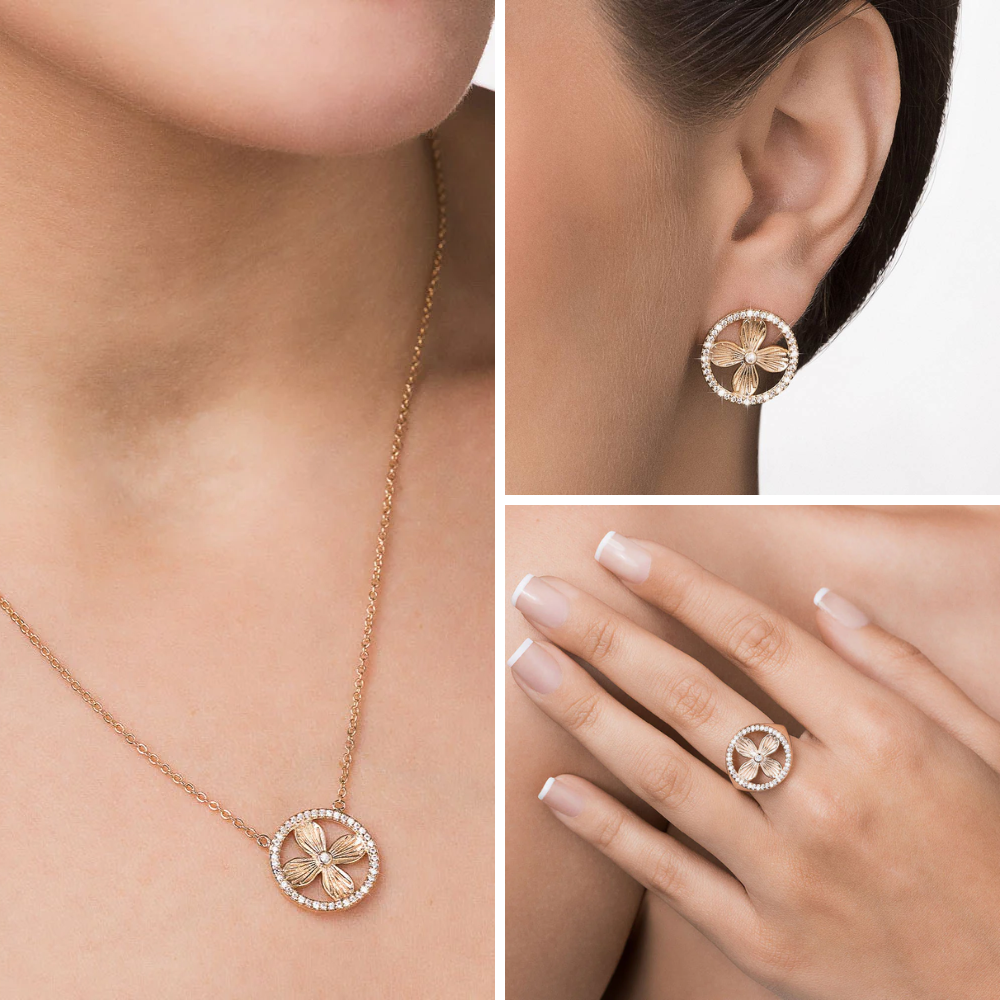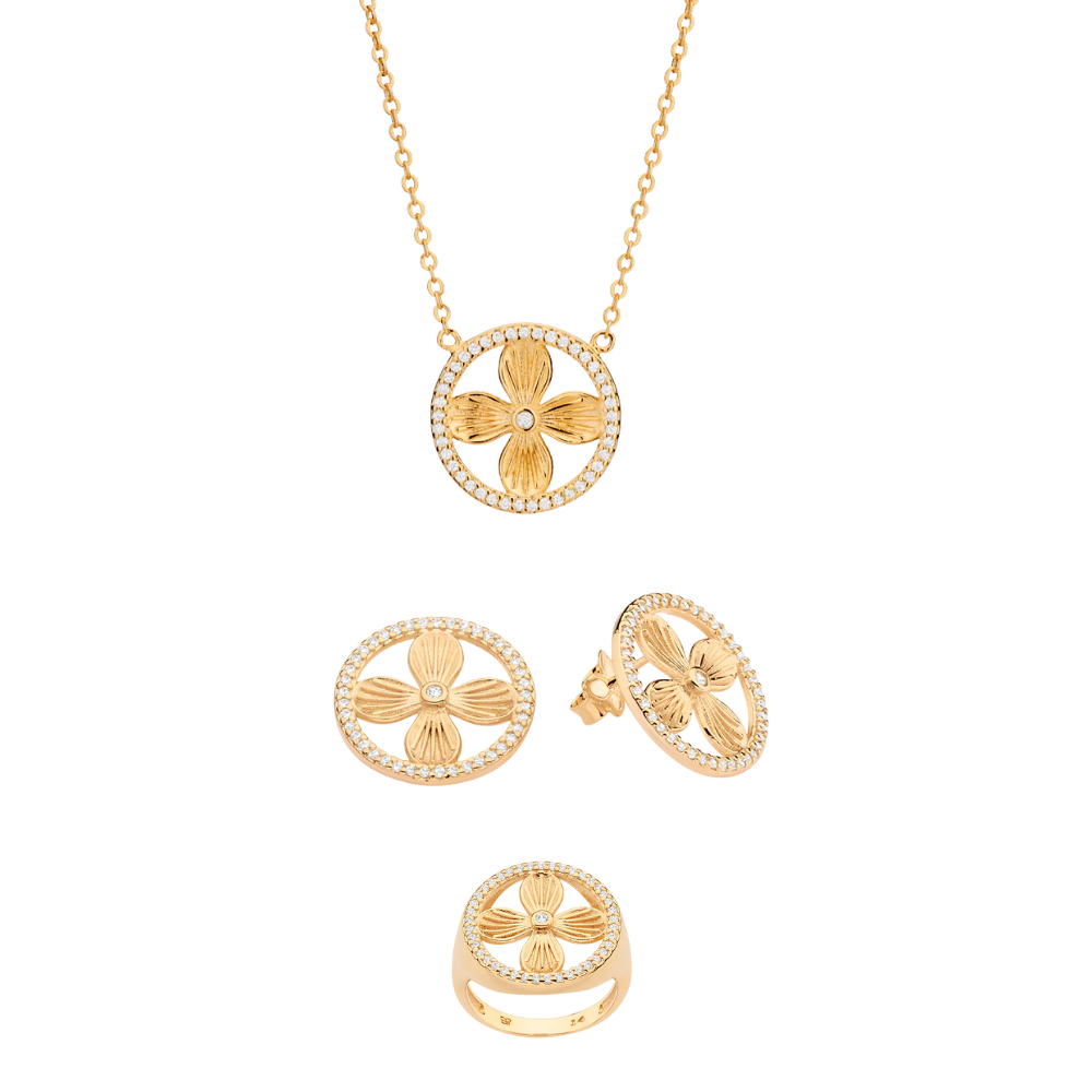 JEWELRY SET GOLD LUSH PETAL (NECKLACE + EARRING + RING)