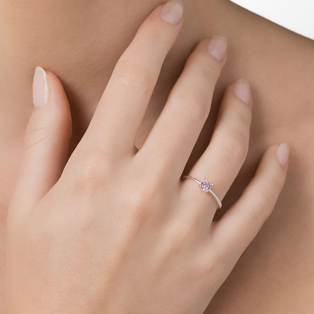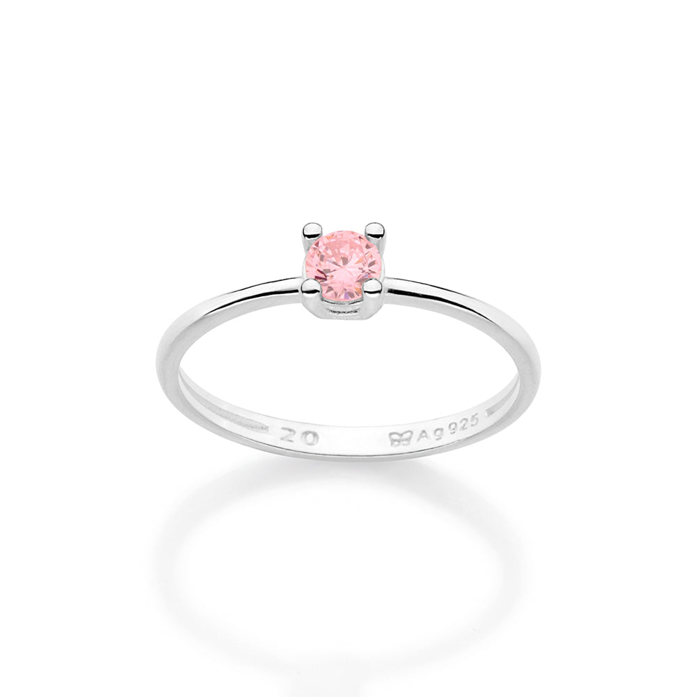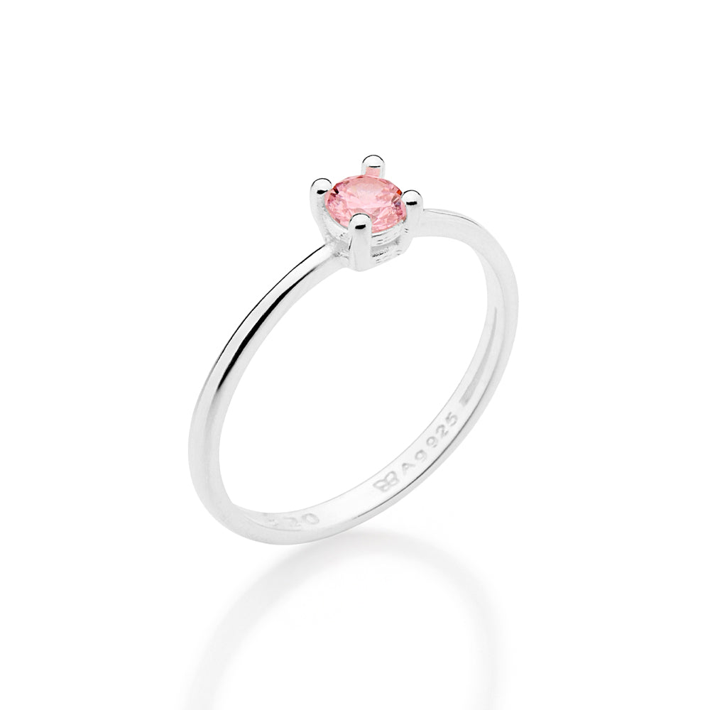SILVER 925 CLASSIC SKINNY SOLITAIRE RING COMPOSED OF ONE (1) LUMINOUS 4.0MM LIGHT PINK ZIRCONIA - SIMPLE, RADIANT, AND ELEGANT, LIKE THE LAST STAR FADING AS DAYLIGHT TAKES OVER.