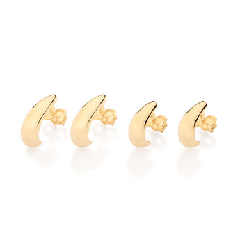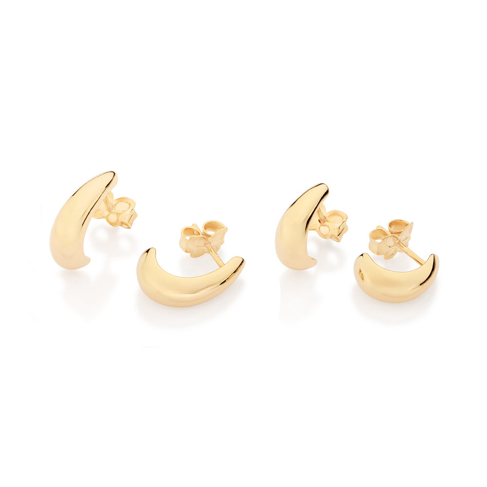 GOLD HALF MOON HUGGIE EARRINGS SET
