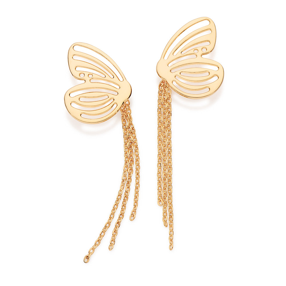 GOLD BUTTERFLY OF TIME FRINGE EARRINGS