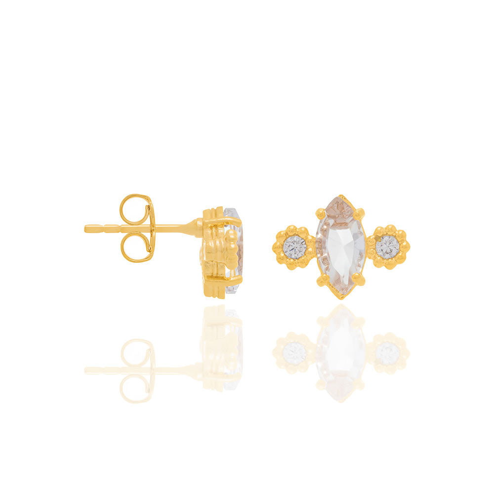 Gold plated earring with crystal and zirconia