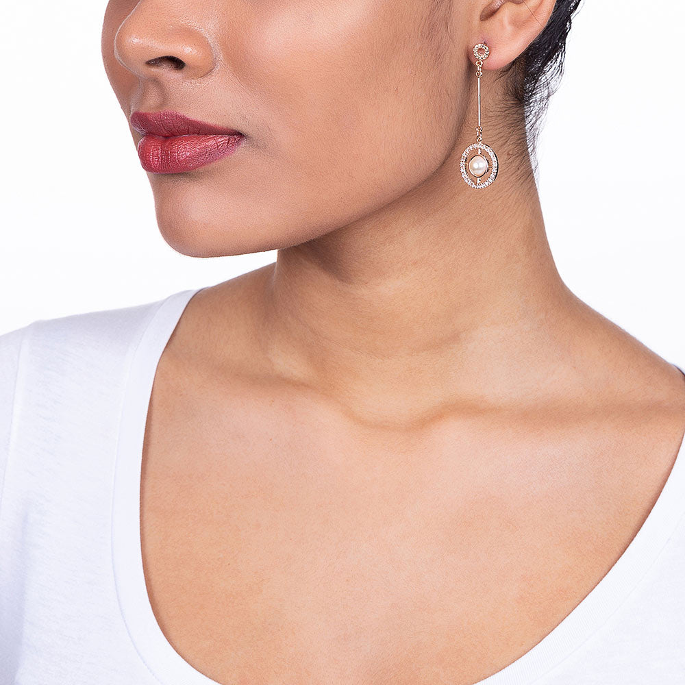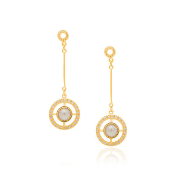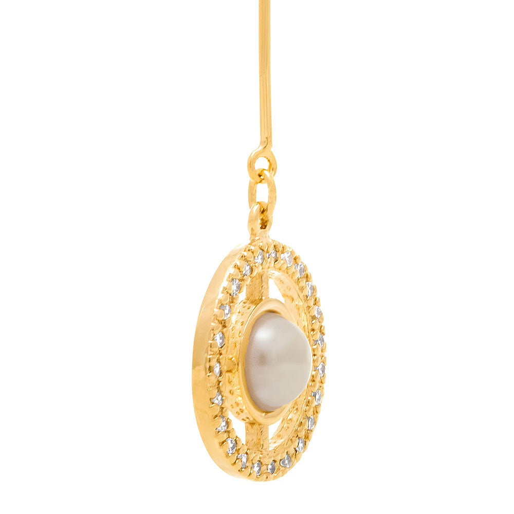 GOLD EARRING WITH PEARL AND ZIRCONIA