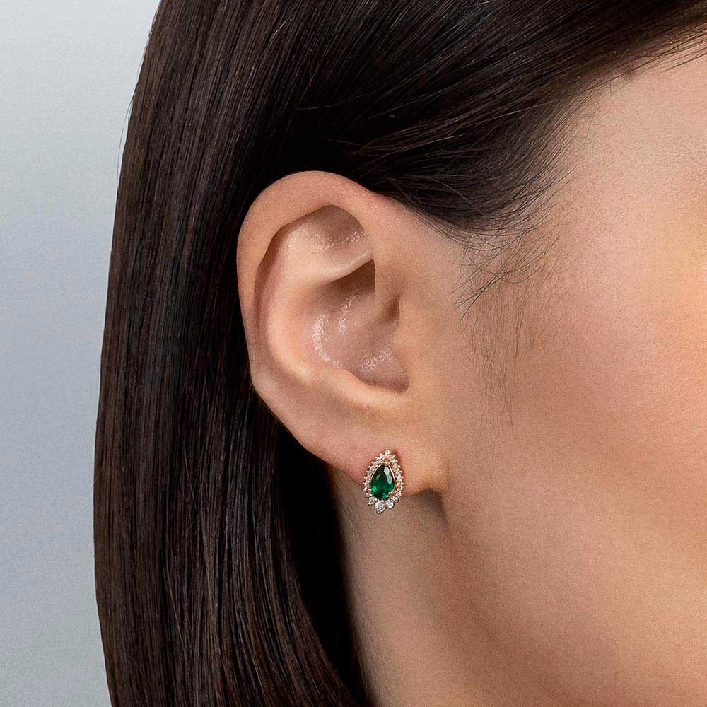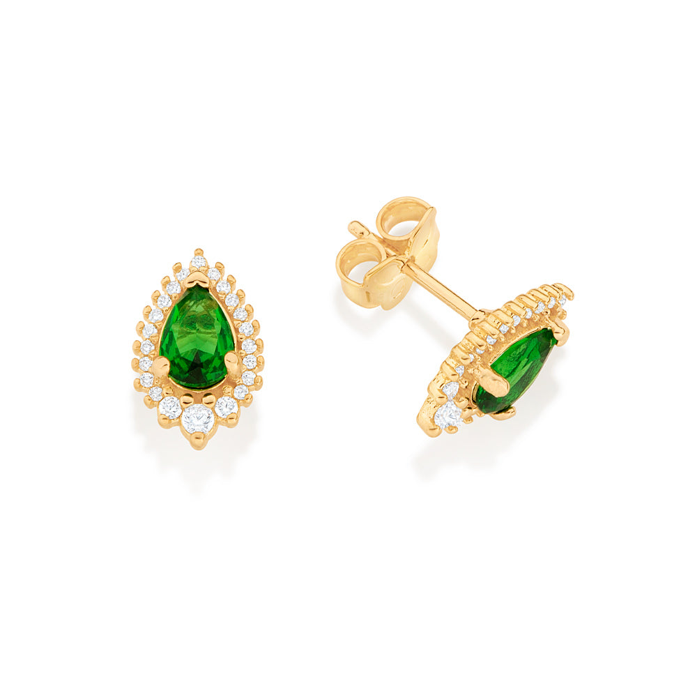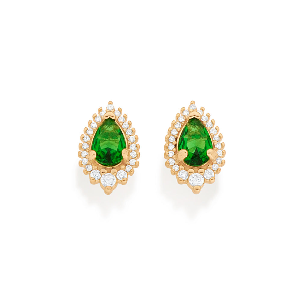 GOLD GREEN DROPLET STUD EARRINGS