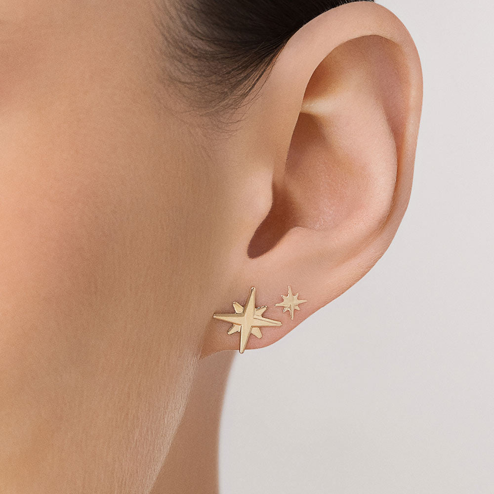 GOLD NORTH STAR STUD EARRINGS SET