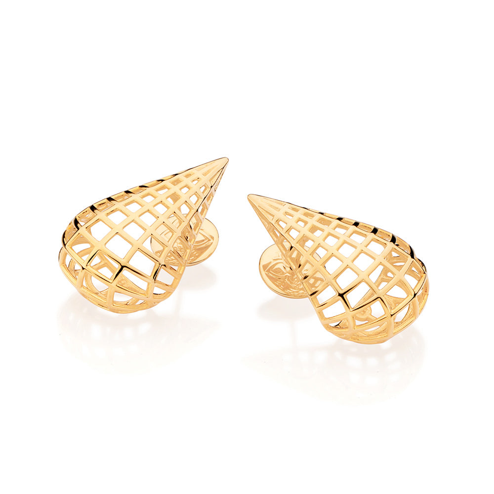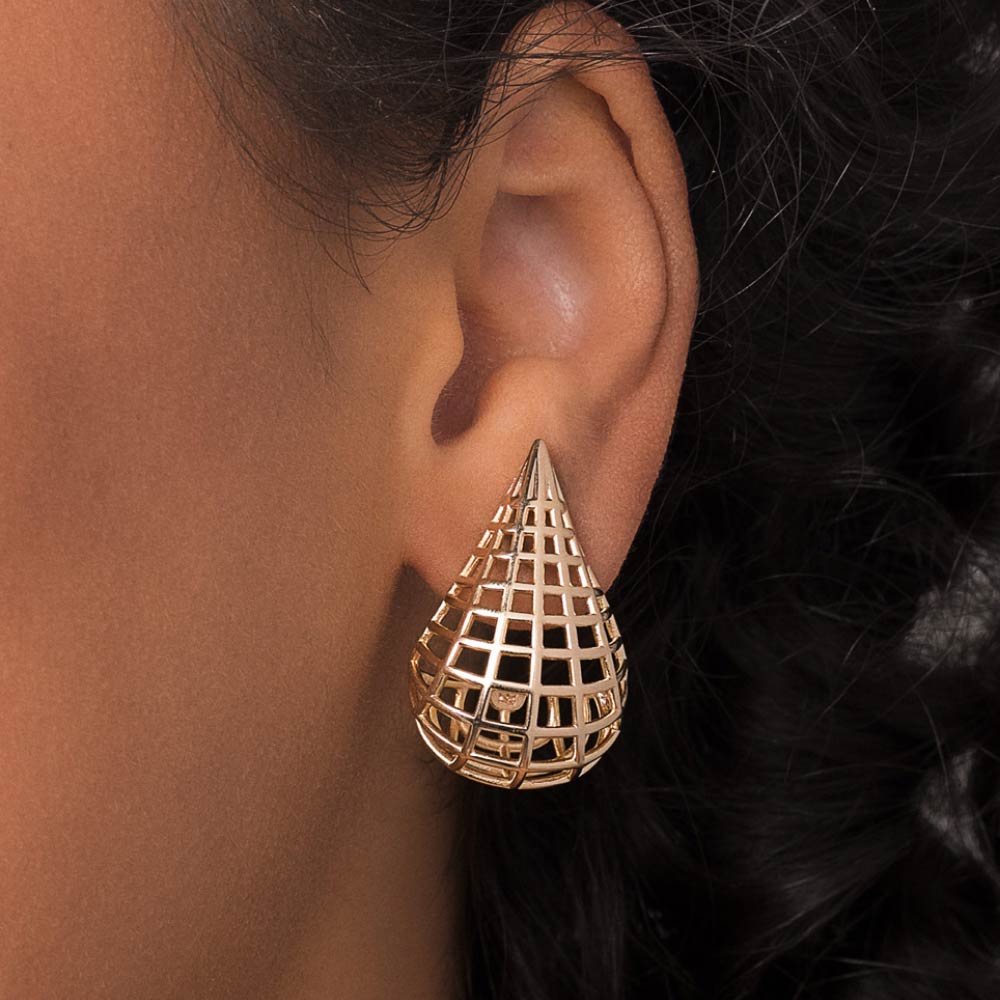 18k gold-plated earrings in the shape of a water droplet with hollow designs. Size: 3cm x 1.8cm (1.18in x 0.71in).