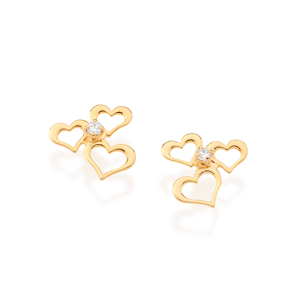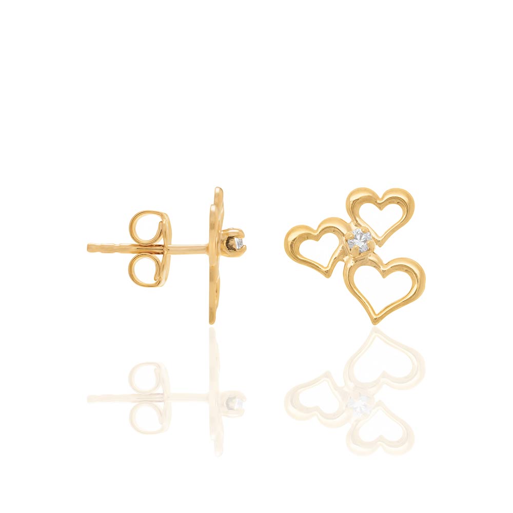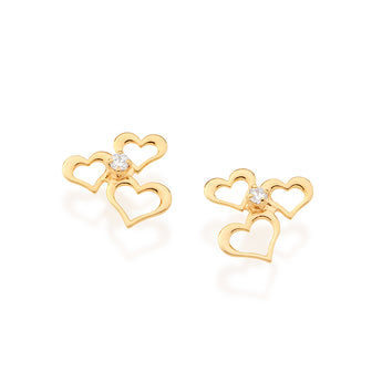 These exquisite earrings offer a beautiful blend of romantic design and subtle sparkle. Each earring features a playful arrangement of six delicate hollow heart motifs, creating an intricate and airy look.