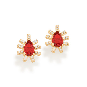 Rommanel presents the power to transform, an annual collection that reinforces your purpose and celebrates Rommanels 35th birthday. with jewelry that tells a story and translates Rommanels essence, the collection brings you pieces full of meaning. gold plated stud earring composed of one (1) green crystal in the shape of a water droplet measuring 6x4mm surrounded by extensions studded with eighteen (18) white zirconias measuring 0.8mm each. | size: 12mm x 9mm. | stone: zirconia and crystal. | material: 18k gold plated. "