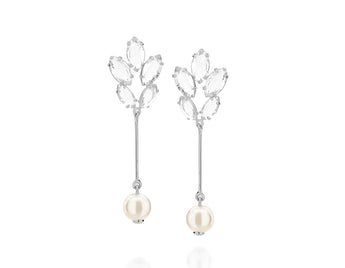 Rhodium plated earring with crystal and zirconia