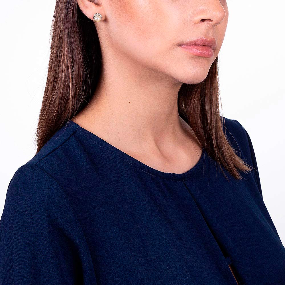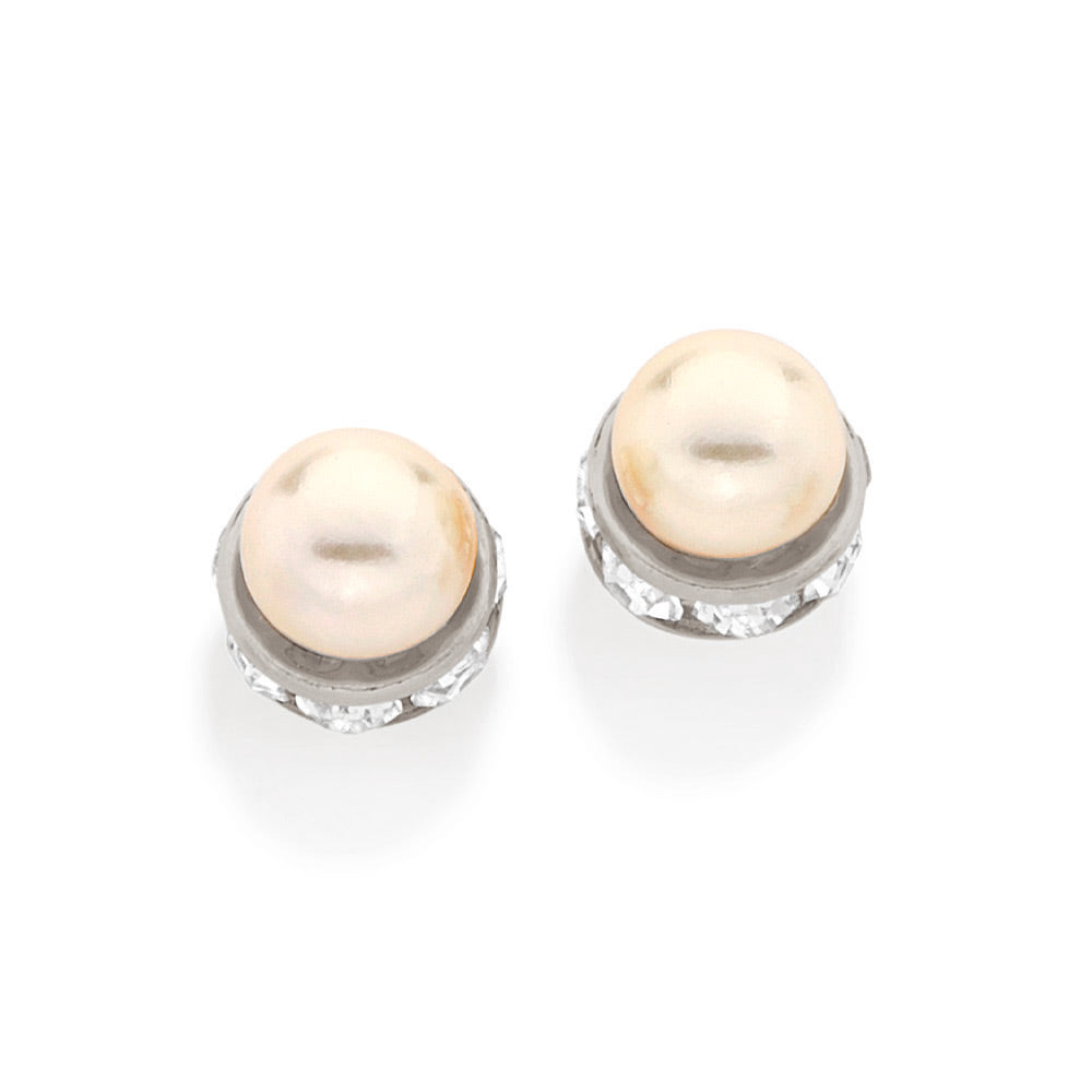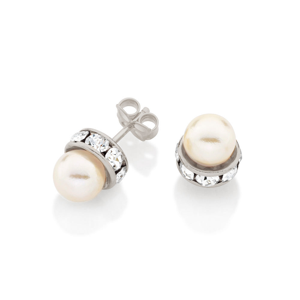 RHODIUM PLATED EARRING WITH PEARL AND CRYSTAL