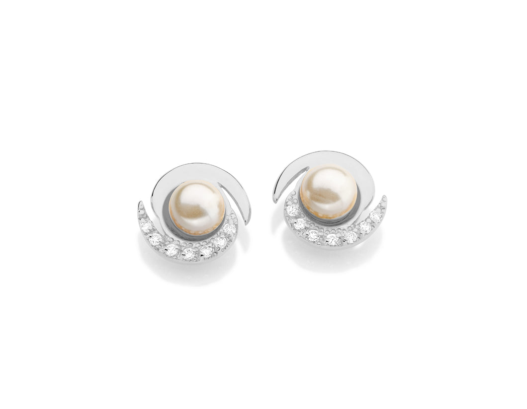 RHODIUM PLATED EARRING WITH PEARL AND ZIRCONIA