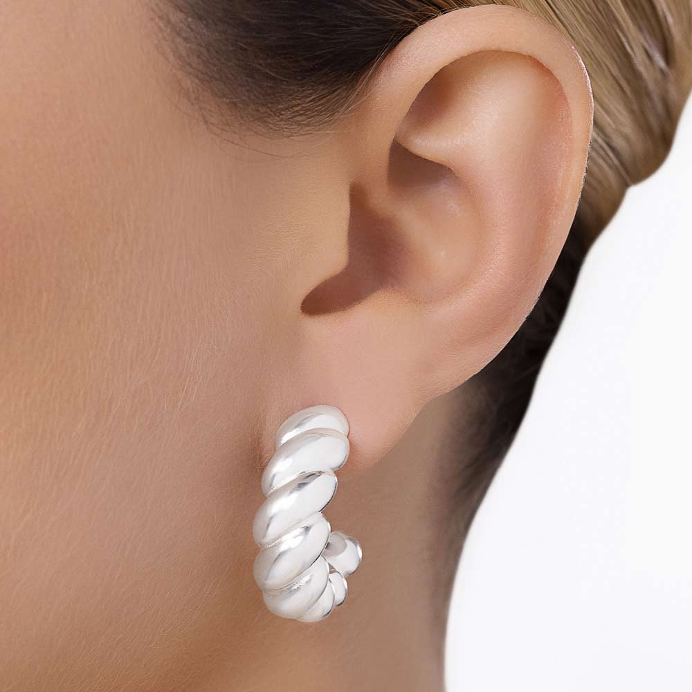 SILVER 925 CLASSIC TWISTED HUGGIE EARRINGS