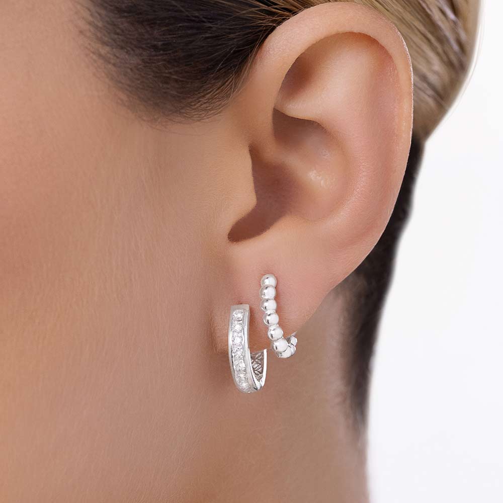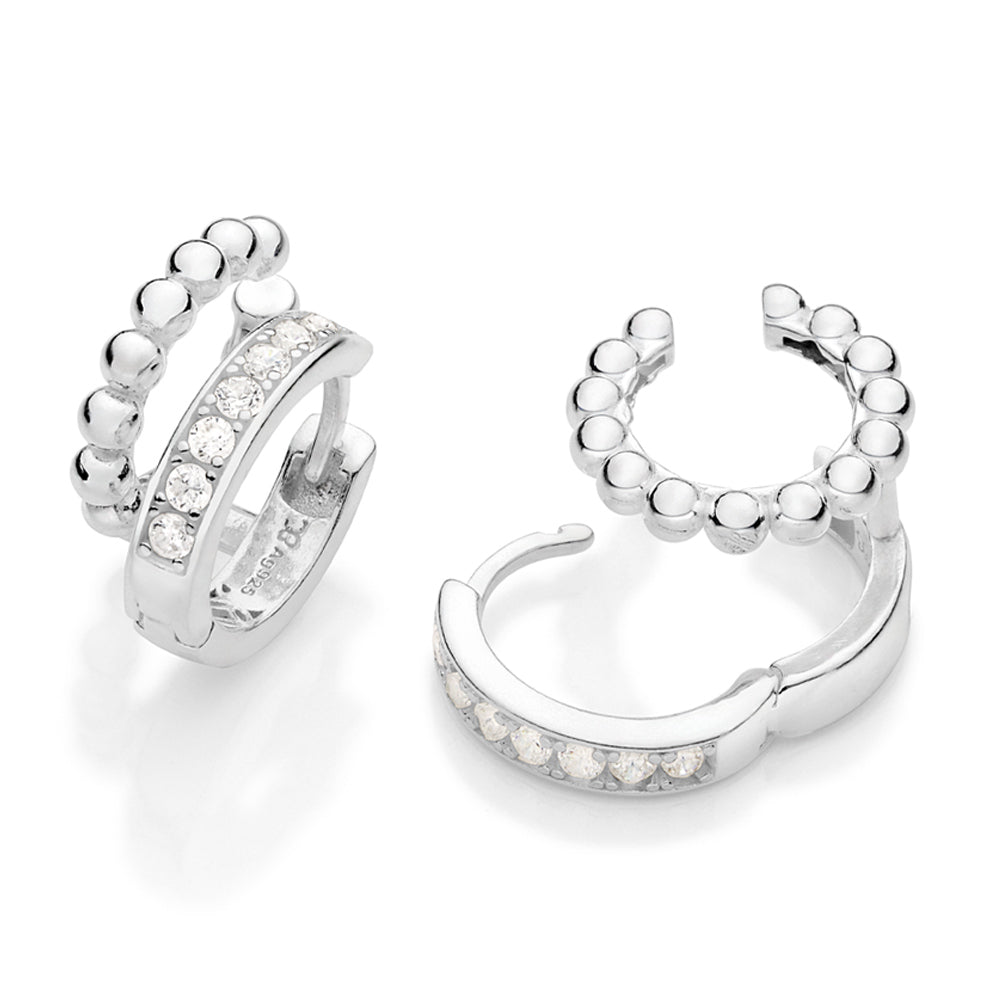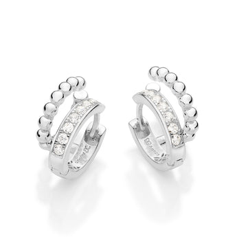 SILVER 925 DOUBLE SPHERE HUGGIE EARRINGS
