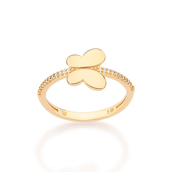 Graceful and symbolic, the 18k gold-plated papillon ring centers a butterfly silhouette atop a band adorned with 22 zirconias (0.80 mm), offering a delicate balance of shimmer and sophistication. a feminine piece that adds charm to any look. (licensed ana hickmann collection)