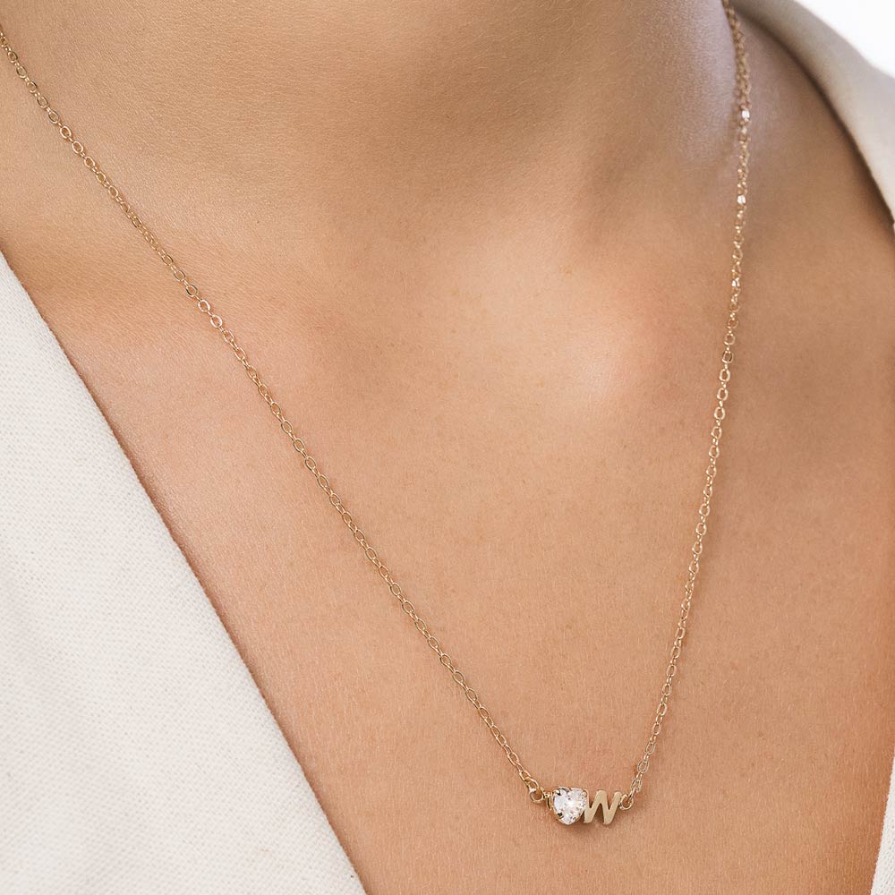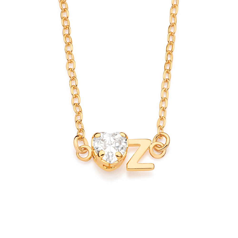 18K Gold-plated necklace composed of a letter pendant and one (1) heart zirconia measuring 5x5mm. Size: 50cm (20in) - adjustable to 45cm (18in).