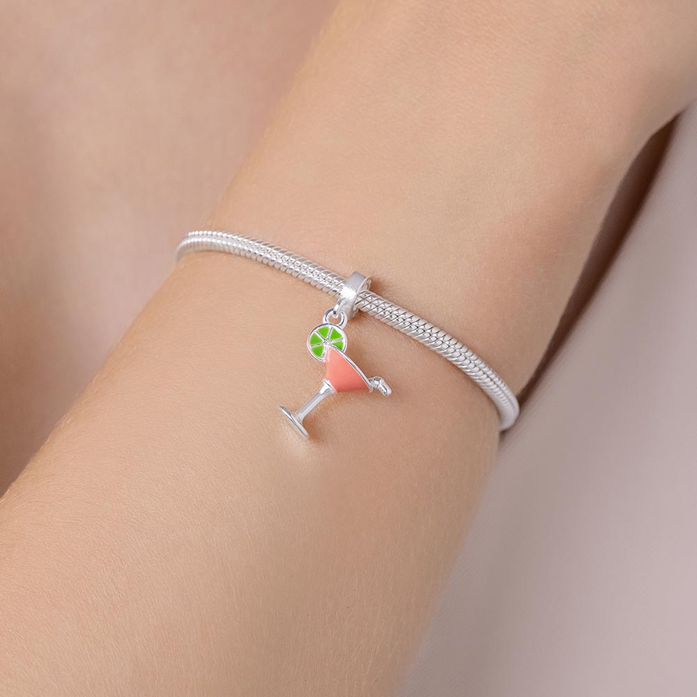 Inspired by sunset aperitivos along the coast, this solid 925 sterling silver charm in the shape of a martini glass measuring 2.8cm x 1.9cm (1.1in x 0,75in) adds a chic, playful statement.