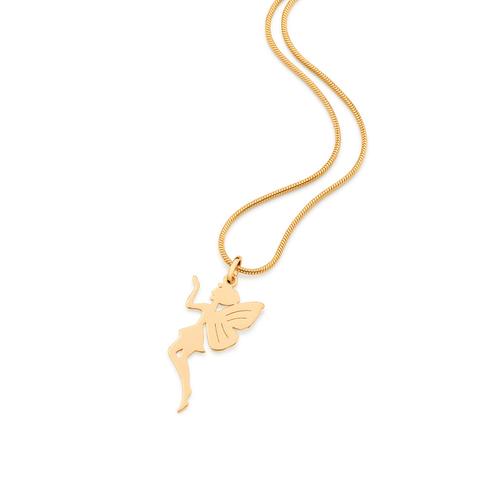 "DESCRIPTION ROMMANEL BRINGS YOU CELEBRATE LIFE BY BRAZILIAN DUO, SIMONE AND SIMARIA, WITH PIECES FULL OF POSITIVE ENERGY AND PERSONALITY. GOLD PLATED PENDANT IN THE SHAPE OF A FAIRY. | SIZE: 3.9X1.5CM. | MATERIAL: 18K GOLD PLATED. (LICENSED JEWELRY CAPSULE COLLECTION S&S - CELEBRATE LIFE)"