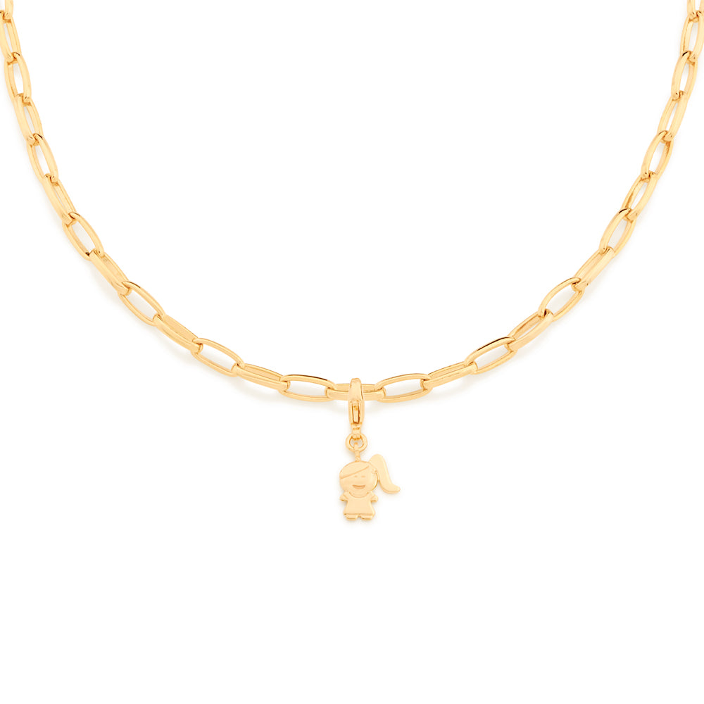 In order to celebrateMothers day, Rommanel has created a completely new collection that reflects a Mothers day love towards her child. gold plated pendant in the shape of a girl with a lobster clasp measuring 0.9cm (0.35in). | size: 2.2cm x 0.9cm (0.87in x 0.35in). | material: 18k gold plated. "