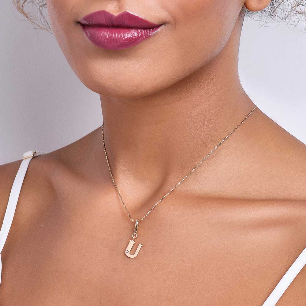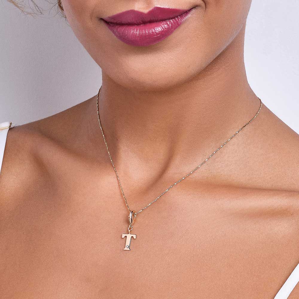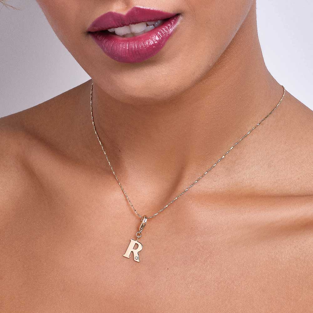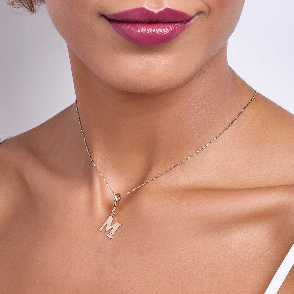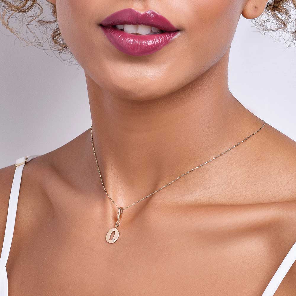 In order to celebrateMothers day, Rommanel has created a completely new collection that reflects a Mothers day love towards her child. gold plated letter pendant with a modern look studded one (1) white zirconia measuring 1.25mm and a lobster clasp. | size: 2.7cm x 1.2cm (1.06in x 0.47in) | stone: zirconia. | material: 18k gold plated. "