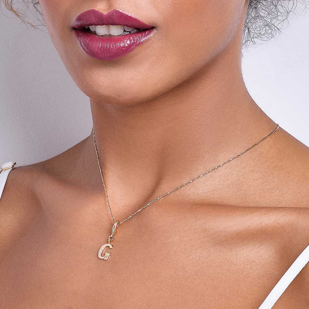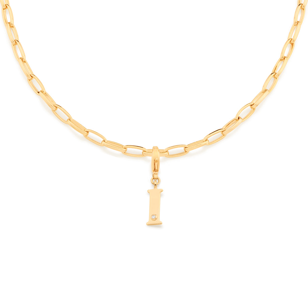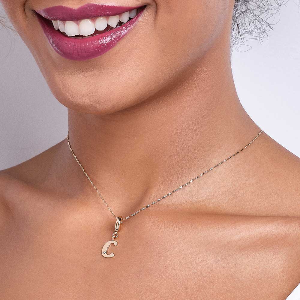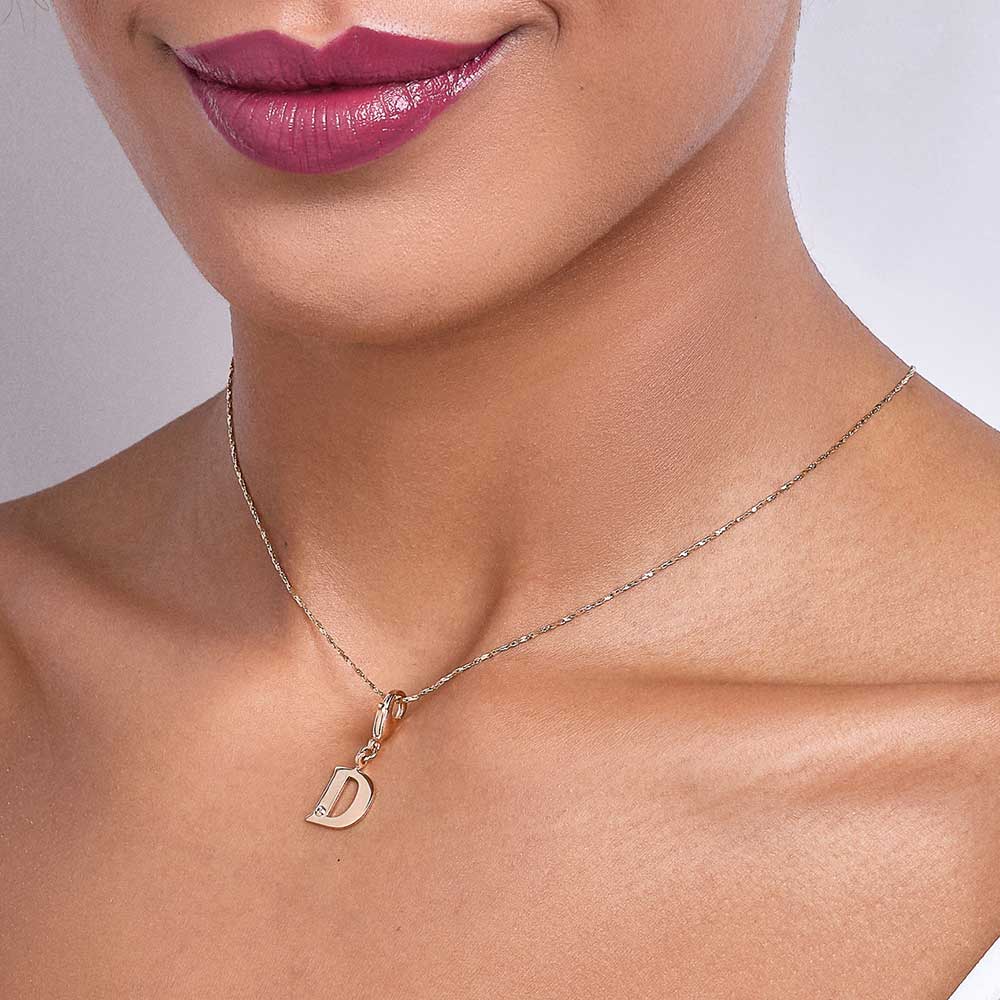 In order to celebrateMothers day, Rommanel has created a completely new collection that reflects a Mothers day love towards her child. gold plated letter pendant with a modern look studded one (1) white zirconia measuring 1.25mm and a lobster clasp. | size: 2.7cm x 1.2cm (1.06in x 0.47in) | stone: zirconia. | material: 18k gold plated. "