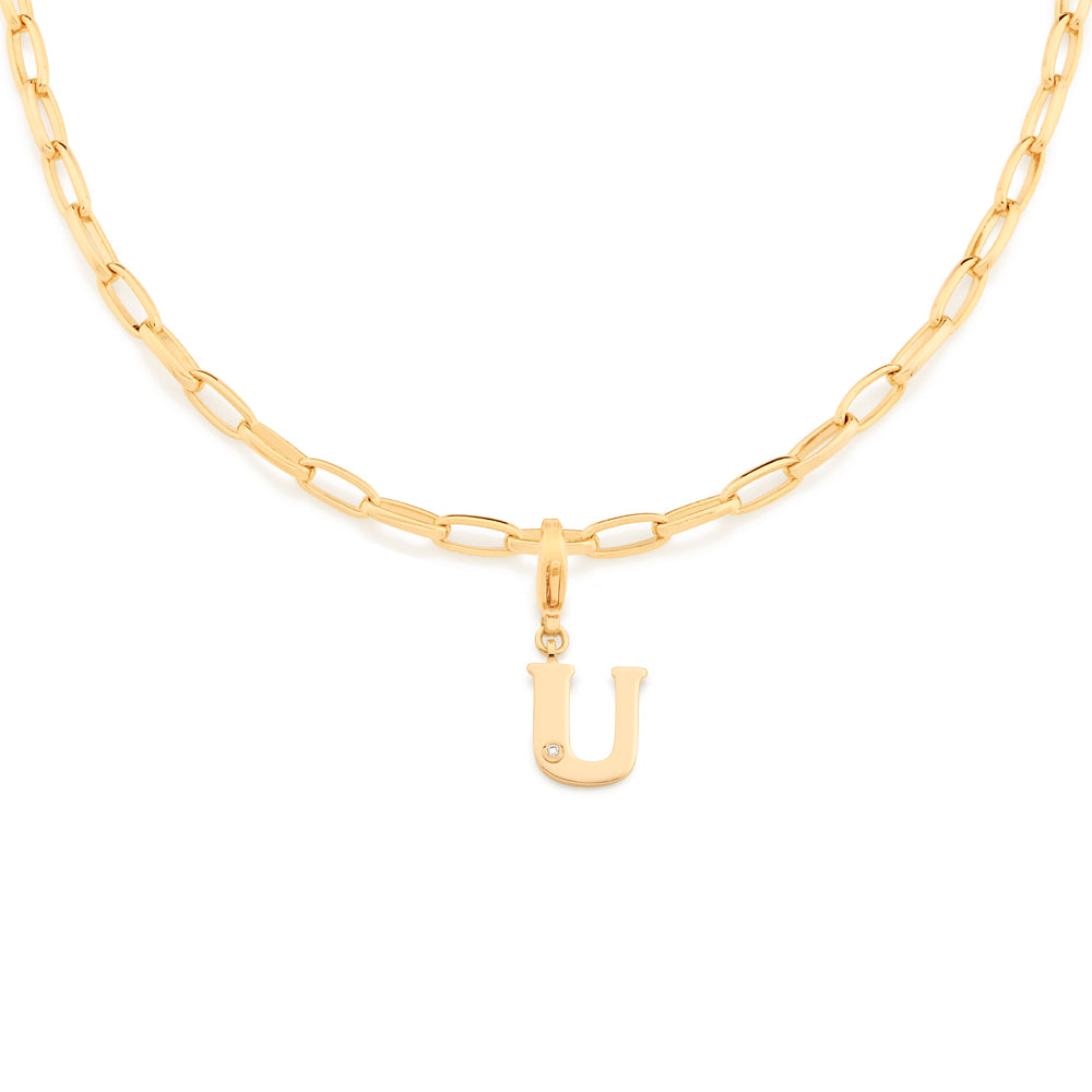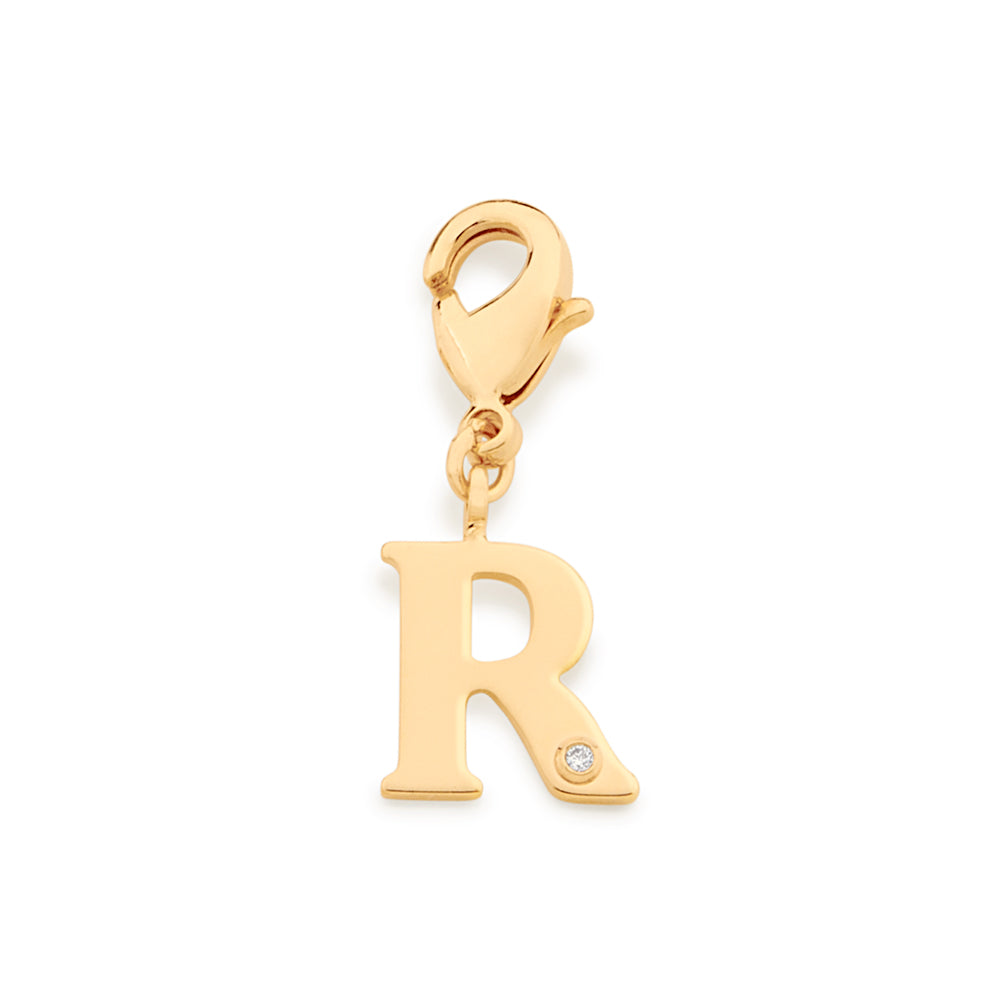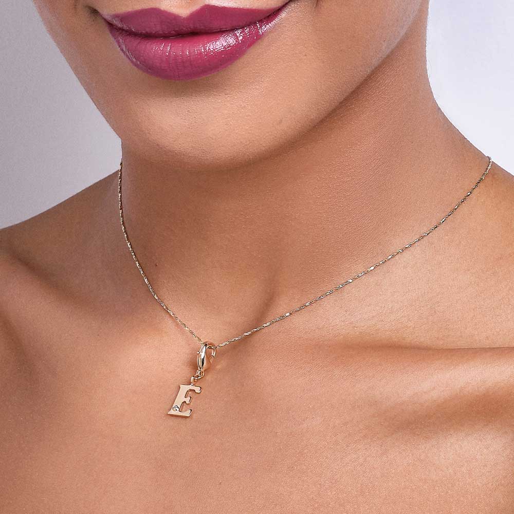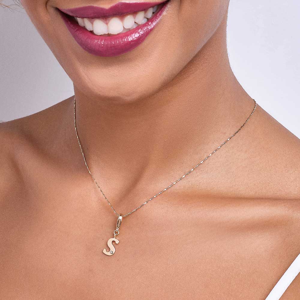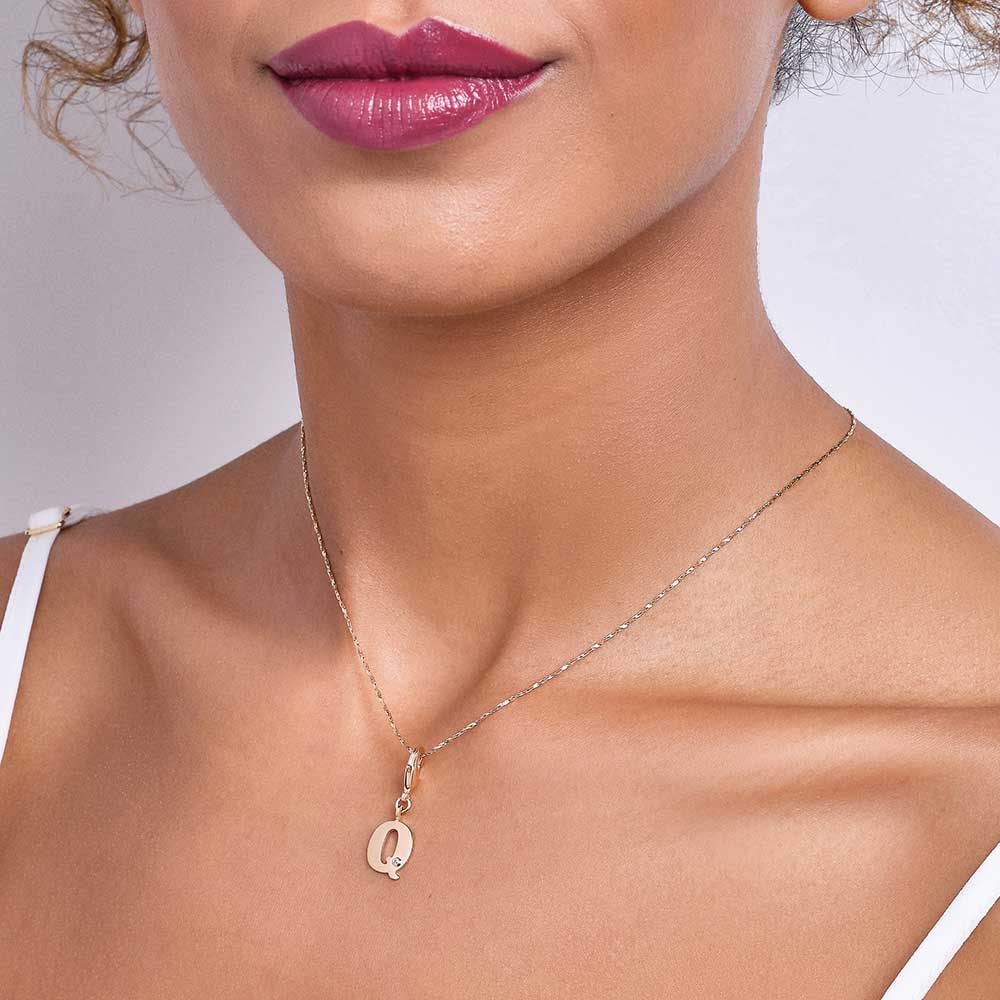 In order to celebrateMothers day, Rommanel has created a completely new collection that reflects a Mothers day love towards her child. gold plated letter pendant with a modern look studded one (1) white zirconia measuring 1.25mm and a lobster clasp. | size: 2.7cm x 1.2cm (1.06in x 0.47in) | stone: zirconia. | material: 18k gold plated. "