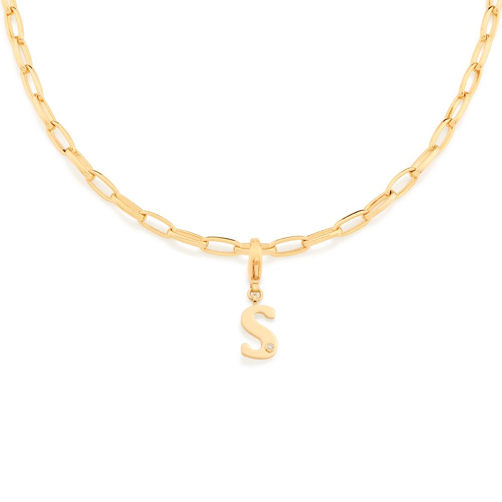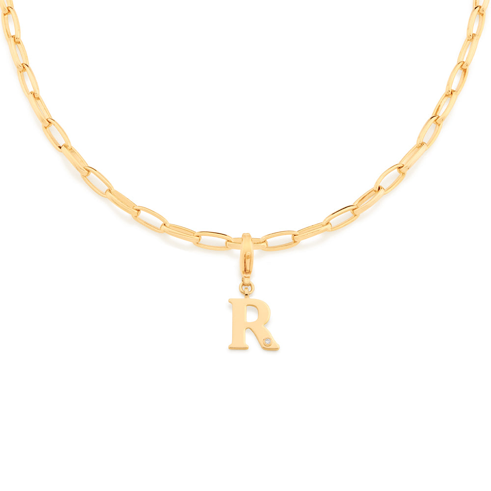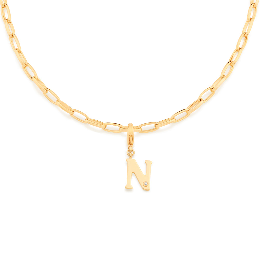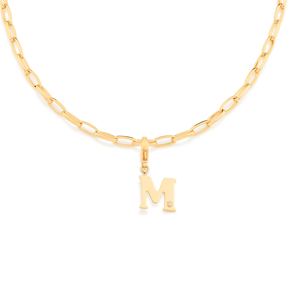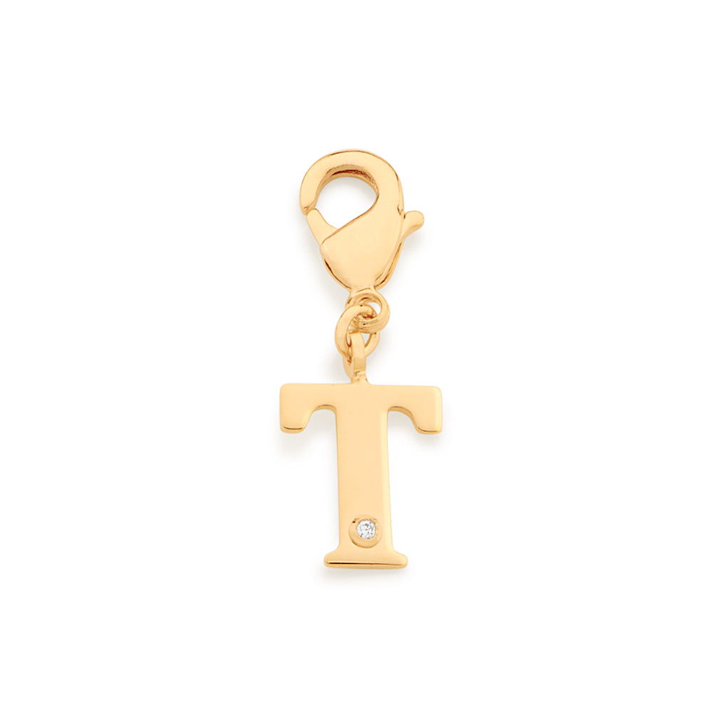 In order to celebrateMothers day, Rommanel has created a completely new collection that reflects a Mothers day love towards her child. gold plated letter pendant with a modern look studded one (1) white zirconia measuring 1.25mm and a lobster clasp. | size: 2.7cm x 1.2cm (1.06in x 0.47in) | stone: zirconia. | material: 18k gold plated. "