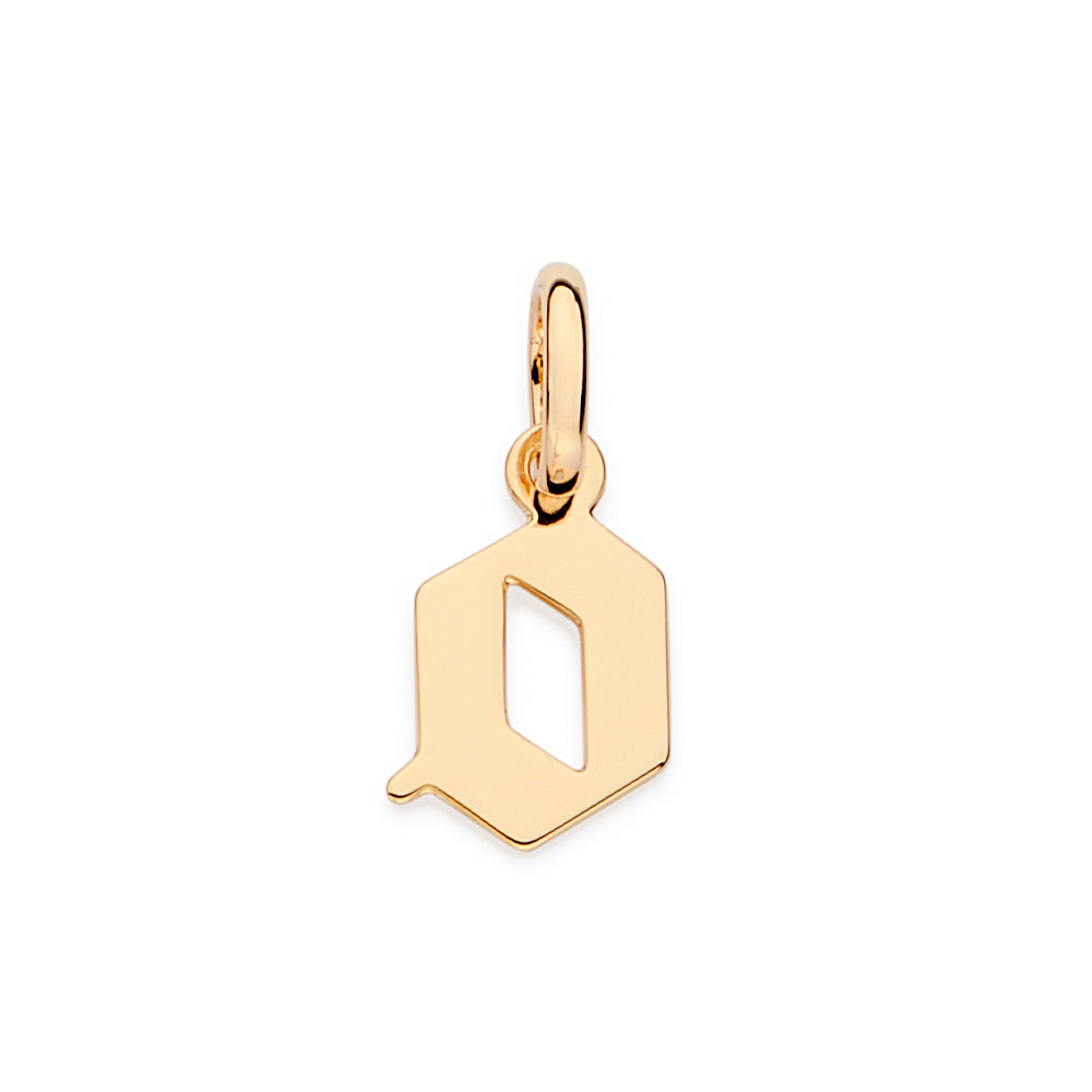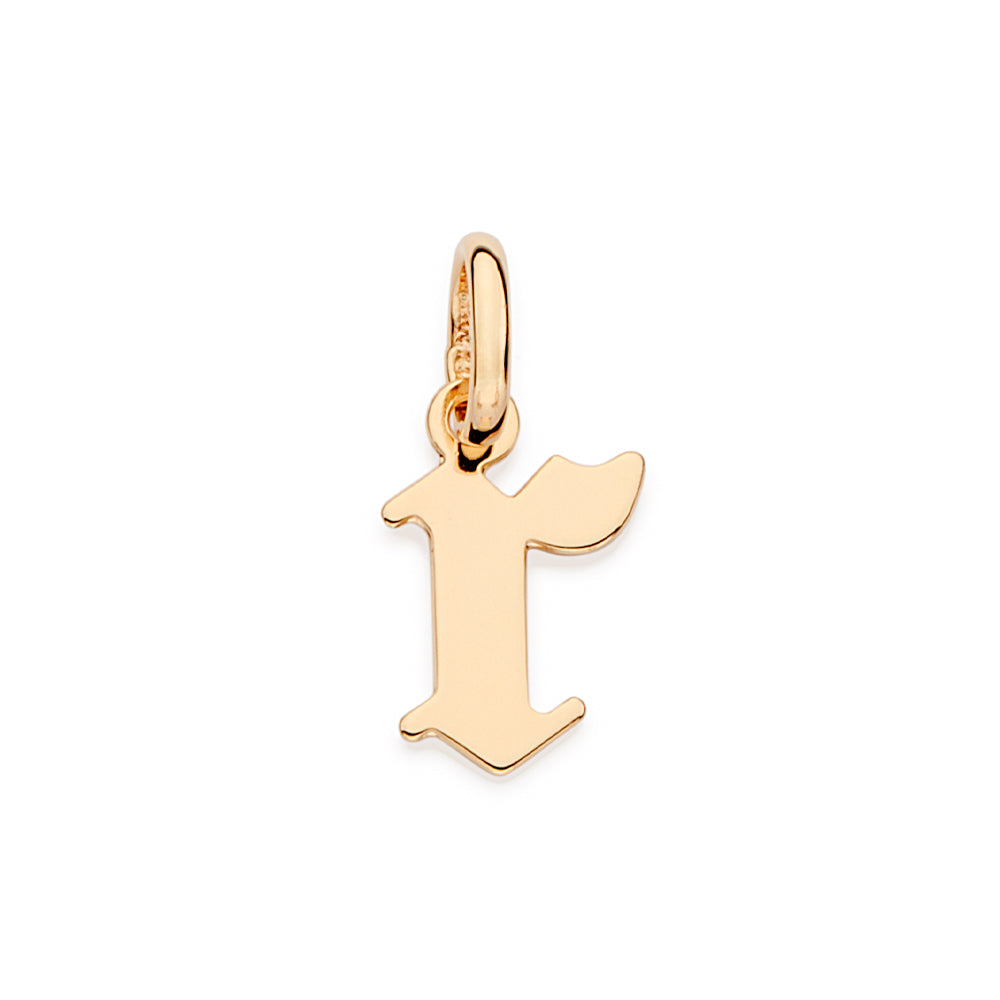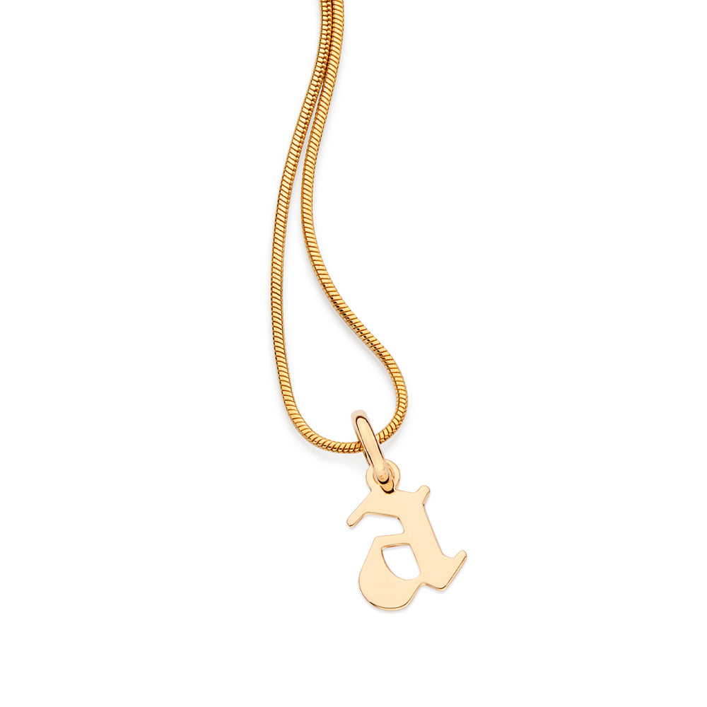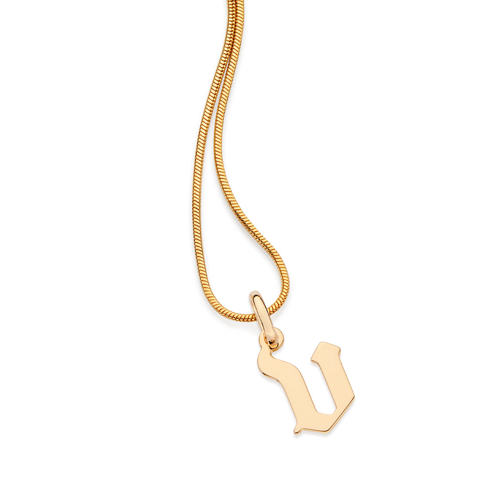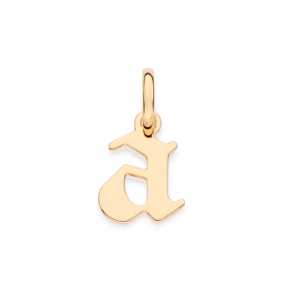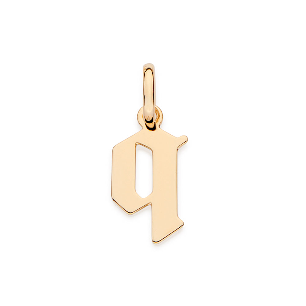 18k gold plated letter pendant in script style. size: 1.9cm x 1.6cm (0.75in x 0.63in).