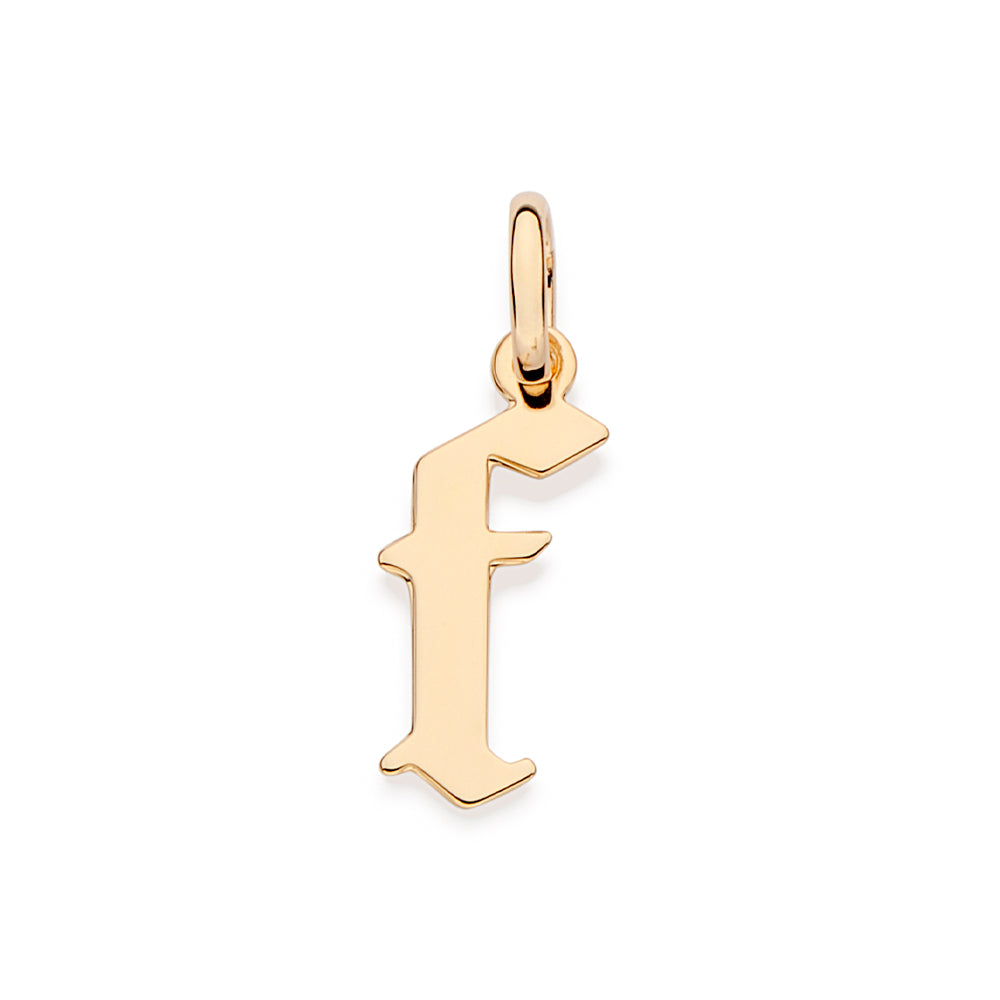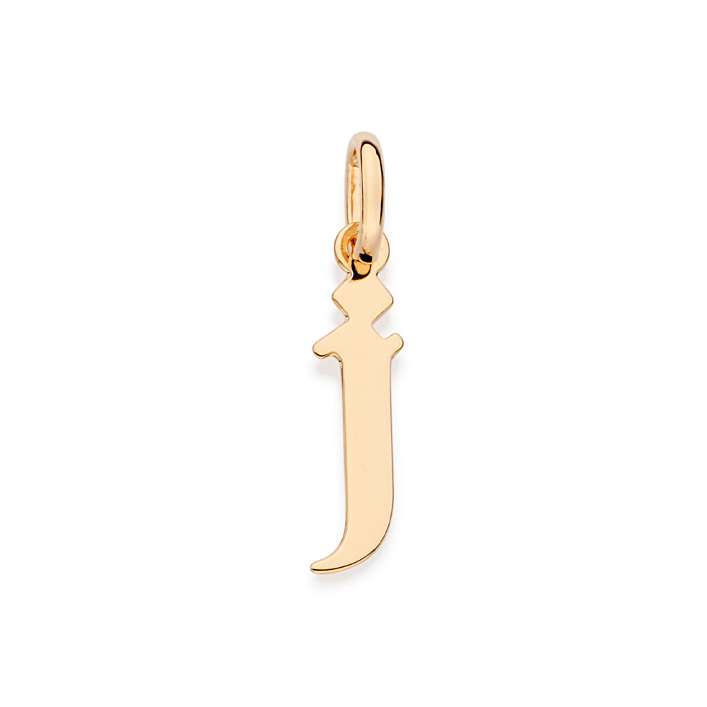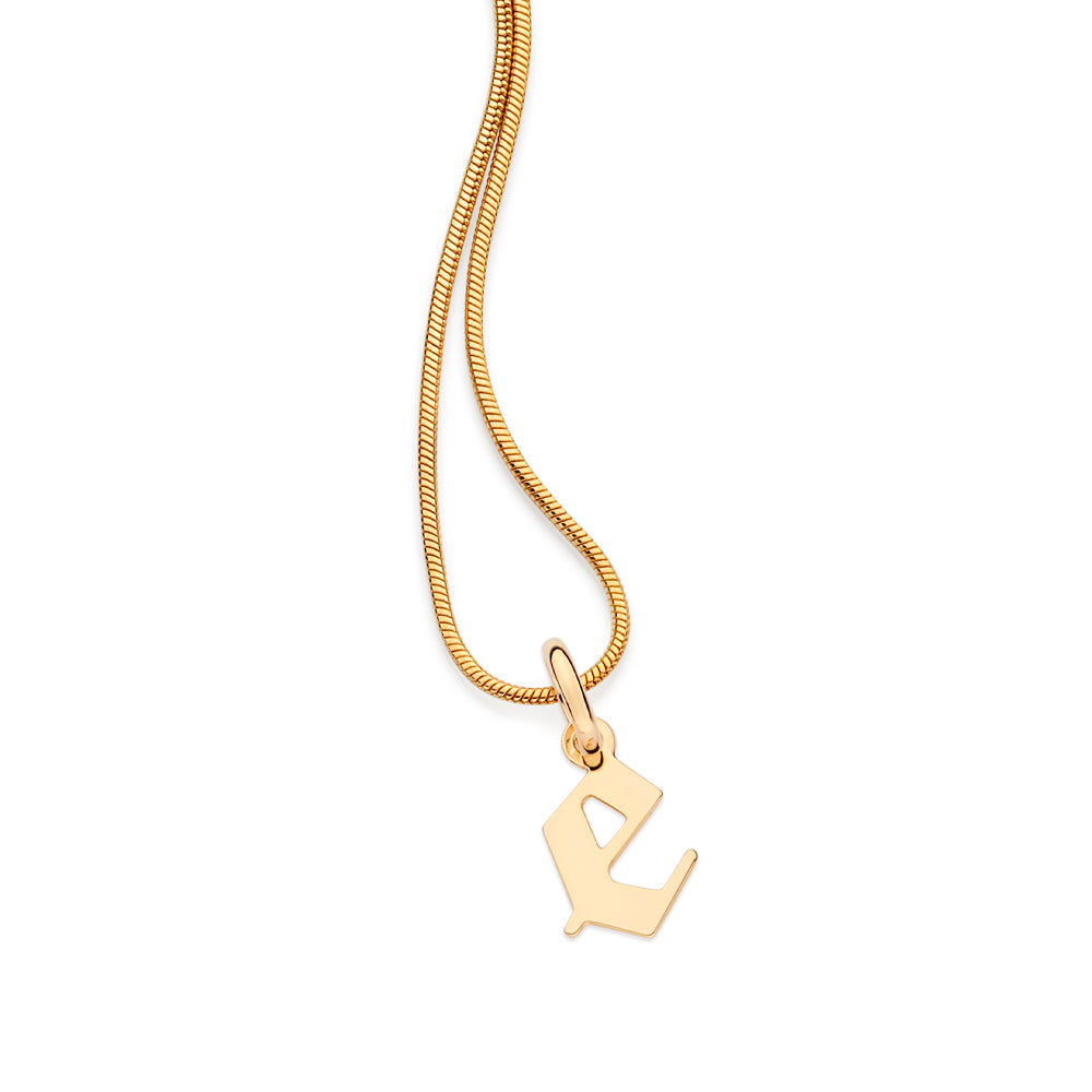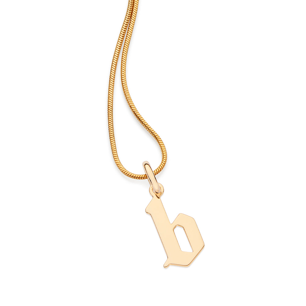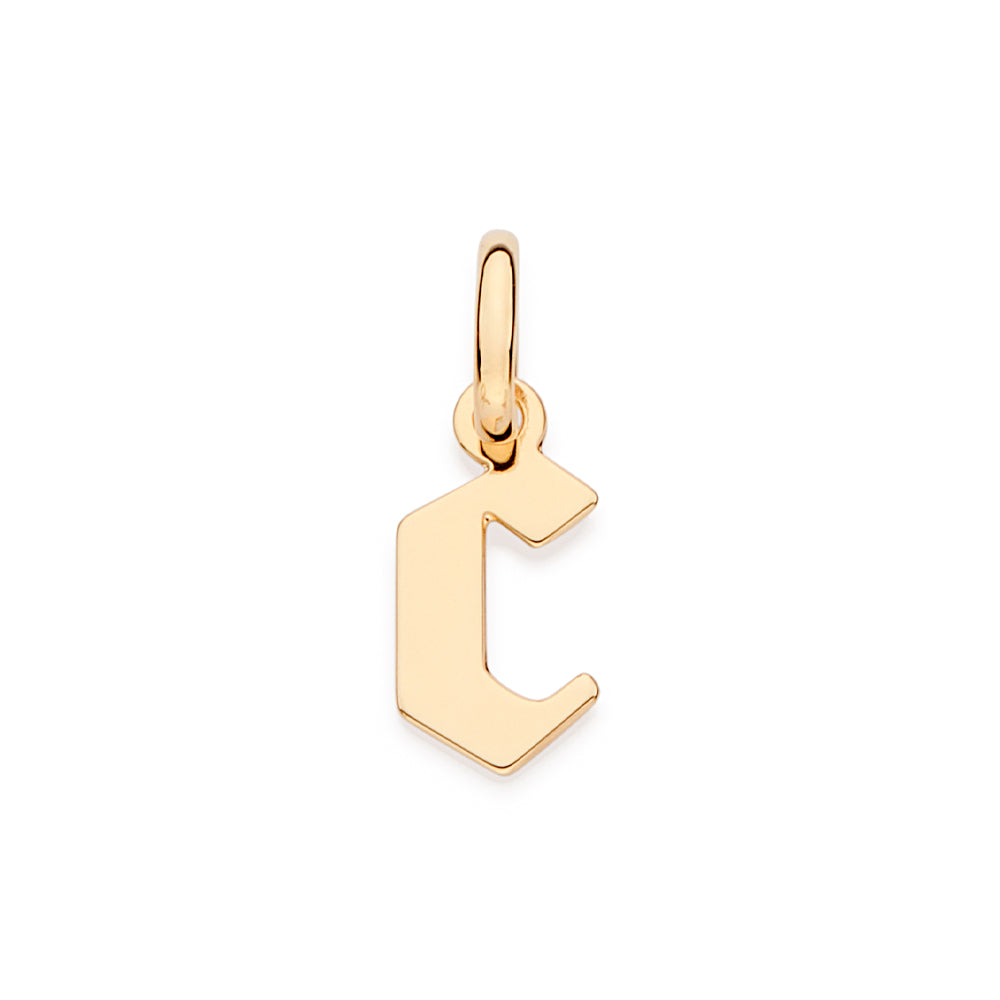 18k gold plated letter pendant in script style. size: 1.9cm x 1.6cm (0.75in x 0.63in).