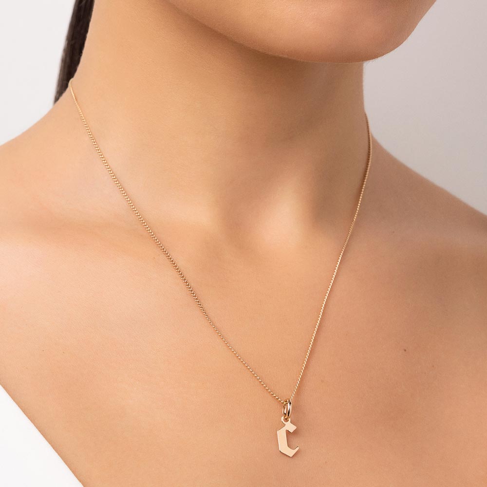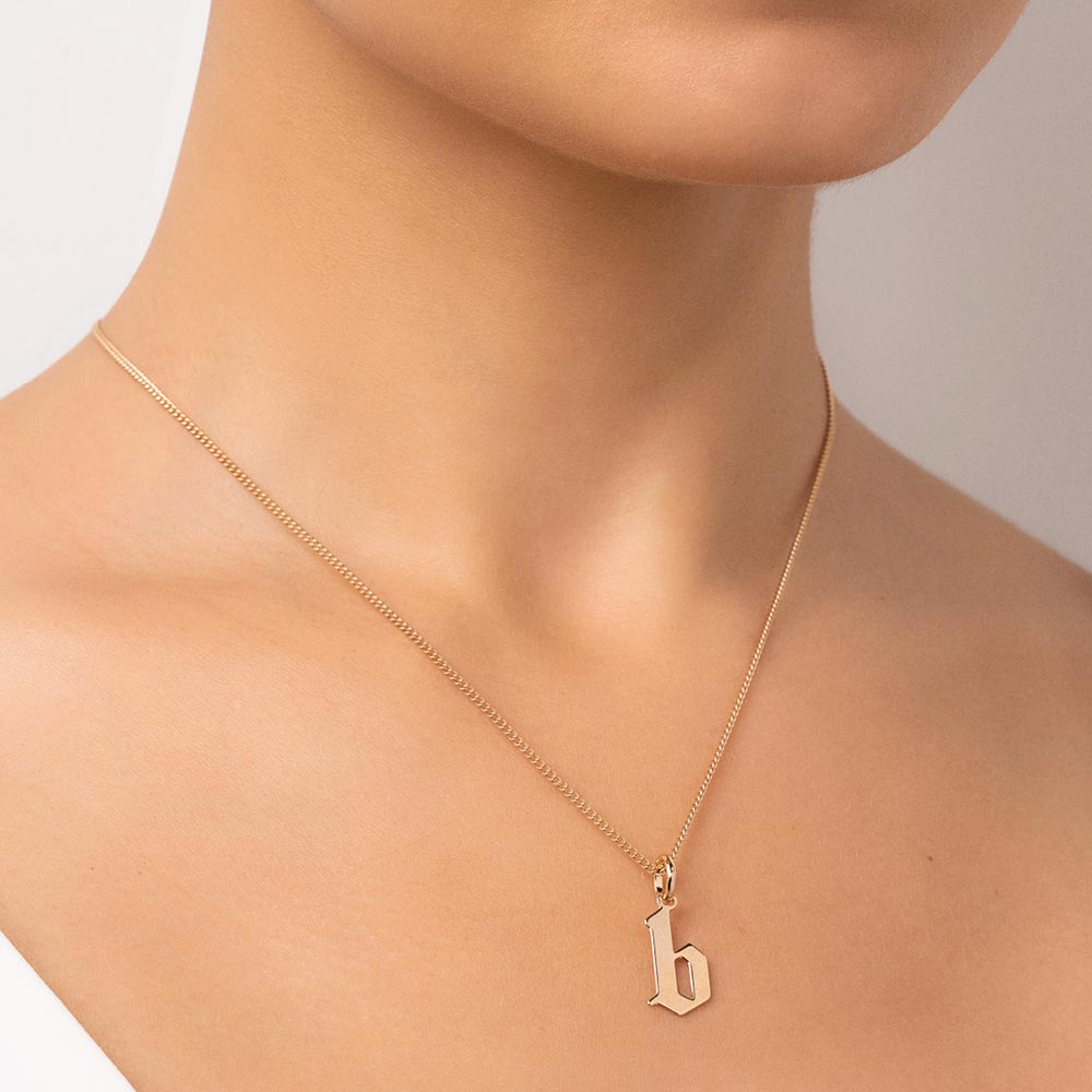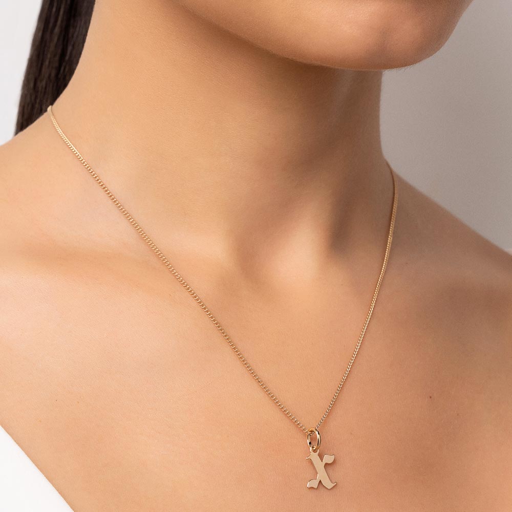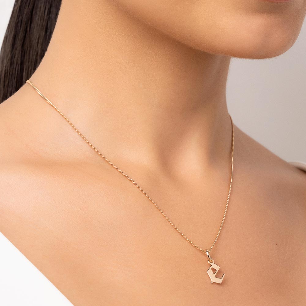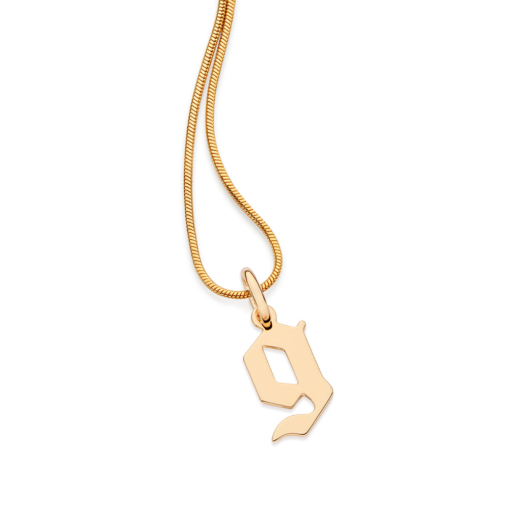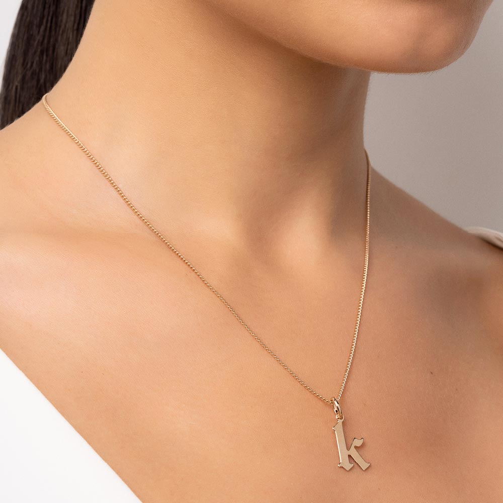 18k gold plated letter pendant in script style. size: 1.9cm x 1.6cm (0.75in x 0.63in).