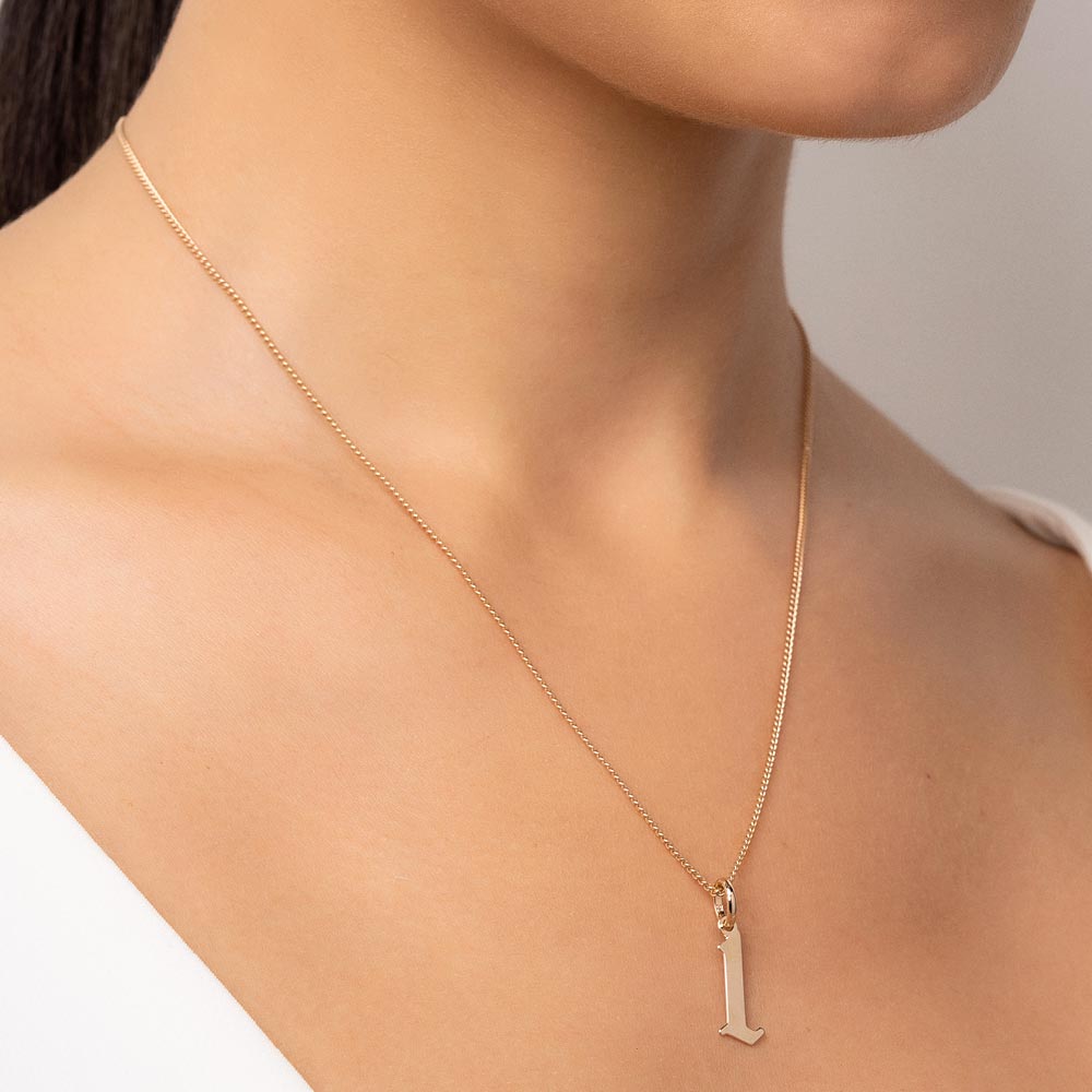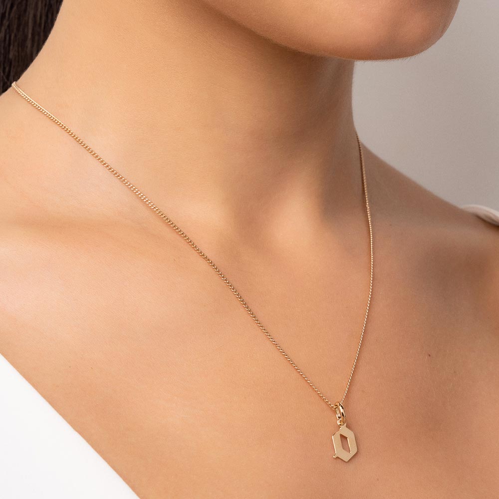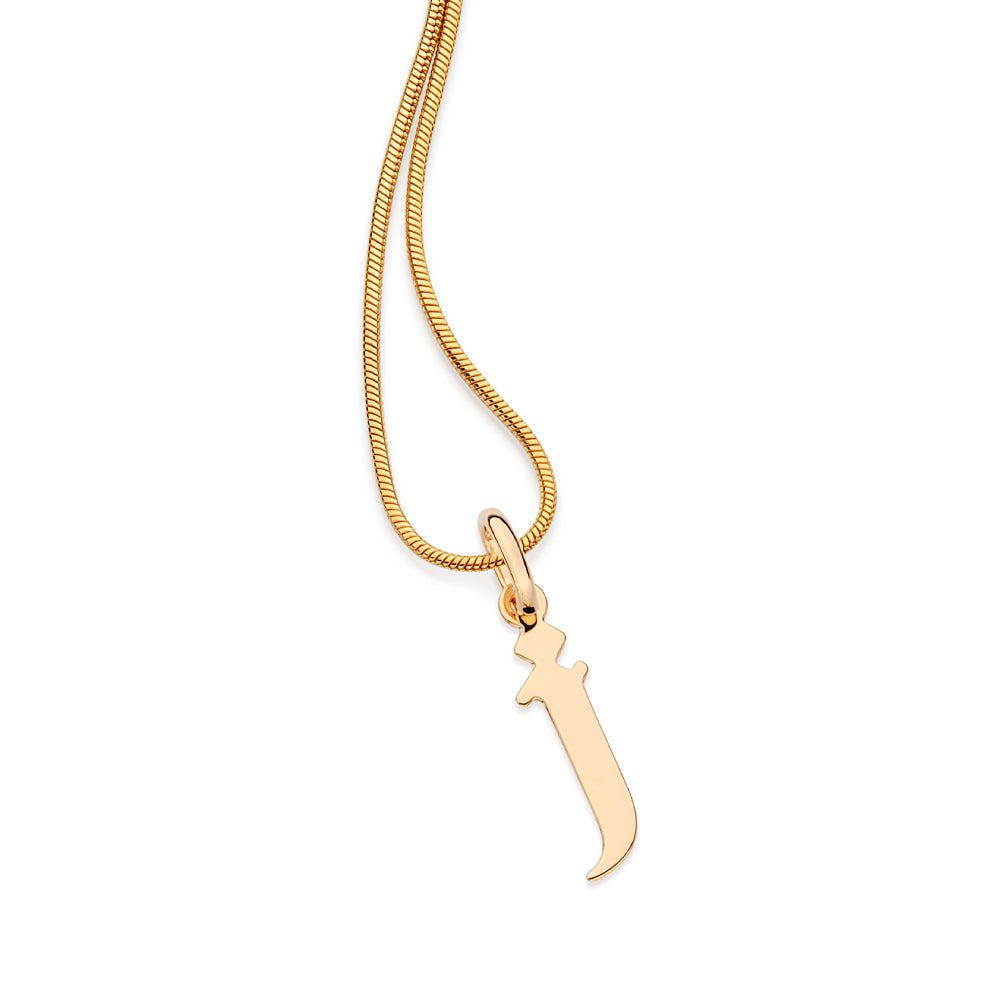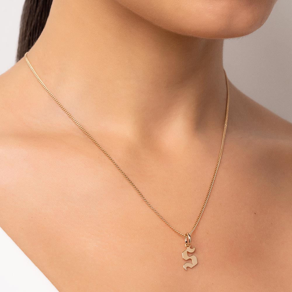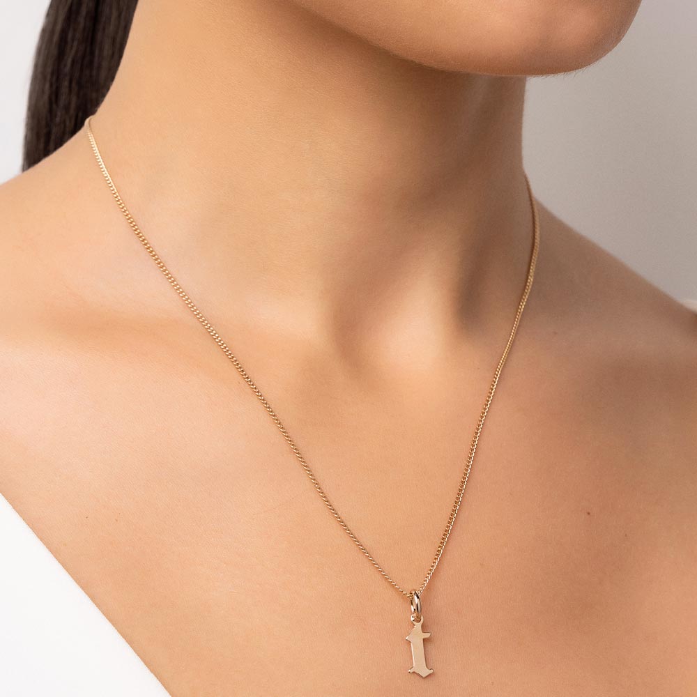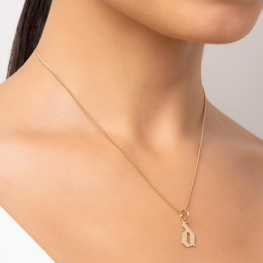 18k gold plated letter pendant in script style. size: 1.9cm x 1.6cm (0.75in x 0.63in).