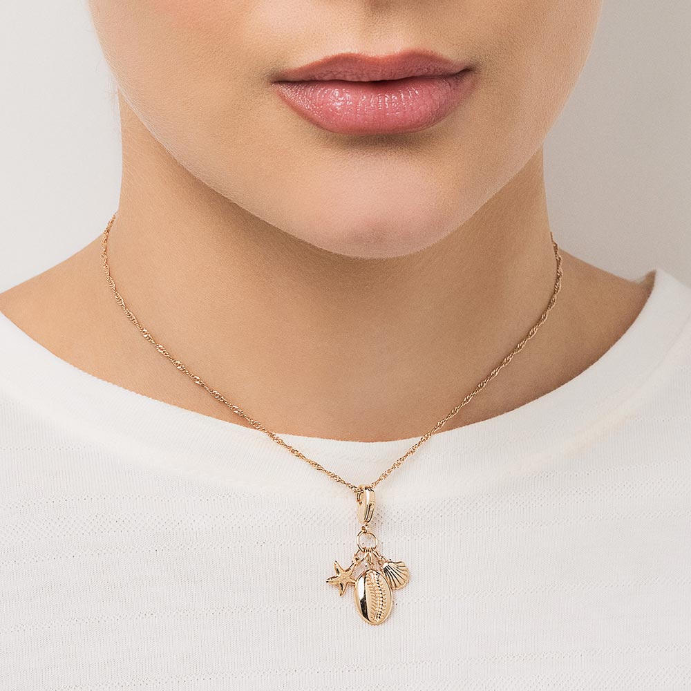 18k gold plated-plated pendant with lobster clasp composed of three (3) different seashell designs. size: 3.1cm x 0.9cm (1.22in x 0.35in).