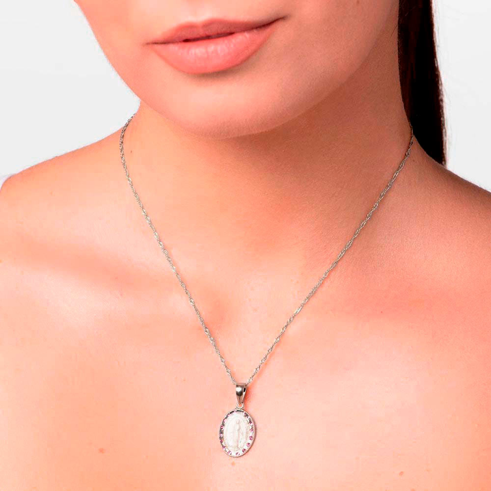 RHODIUM PLATED PENDANT WITH CRYSTAL