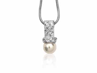RHODIUM PLATED PENDANT WITH PEARL AND ZIRCONIA