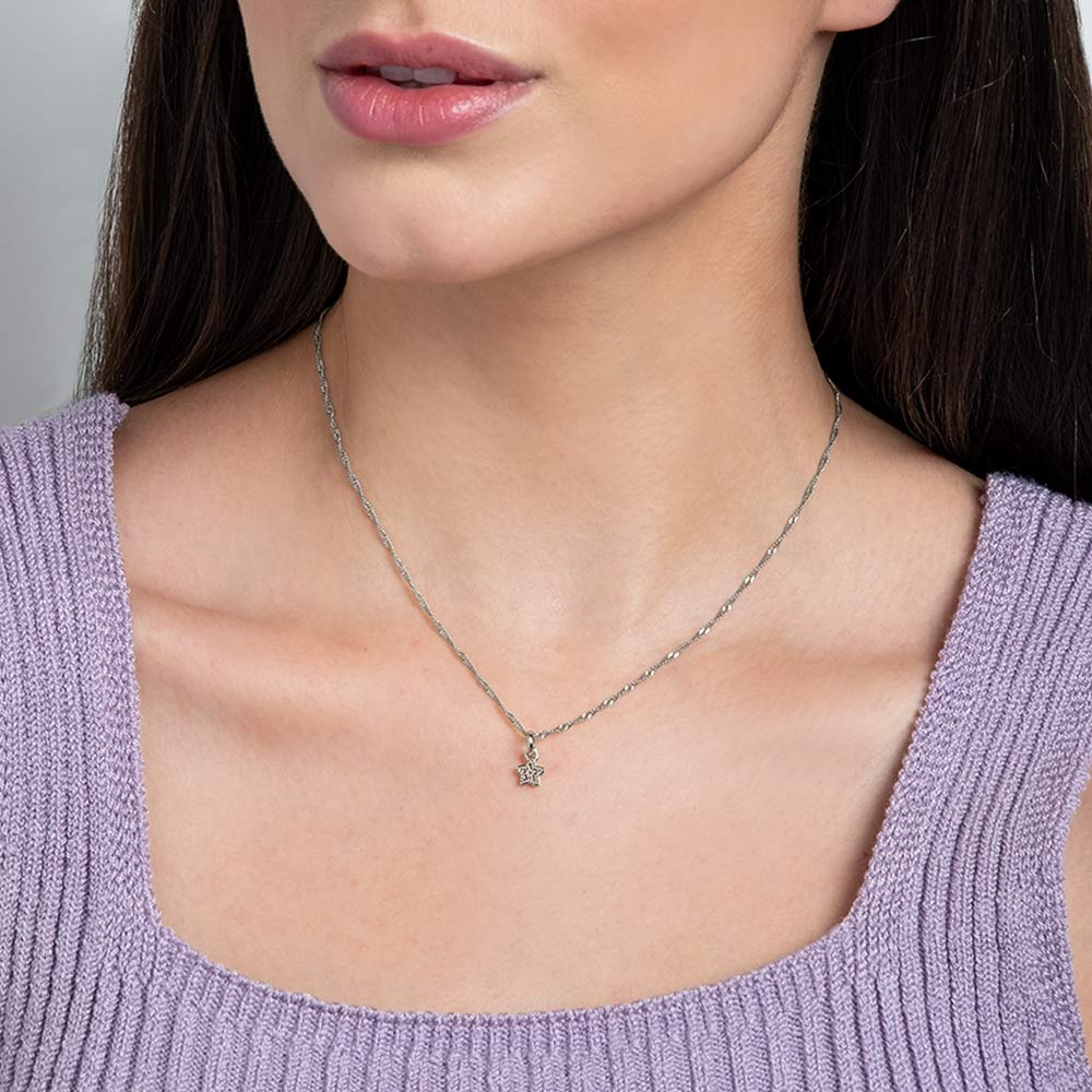 Rommanel presents the power to transform, an annual collection that reinforces your purpose and celebrates Rommanels 35th birthday. with jewelry that tells a story and translates Rommanels essence, the collection brings you pieces full of meaning. rhodium star pendant studded with six (6) white zirconias measuring 1mm each. | stone: zirconia. | material: rhodium plated. "
