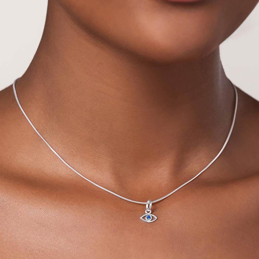 THIS PROTECTIVE EVIL EYE PENDANT IS CRAFTED IN SOLID 925 SILVER AND SET WITH A 2.50 MM ZIRCONIA FOR A TOUCH OF SPARKLE. WORN AS A SYMBOL OF LUCK AND PROTECTION, IT BLENDS SPIRITUALITY WITH MODERN STYLE. SIZE: 1.3CM X 1CM (0.51IN X 0.39IN).