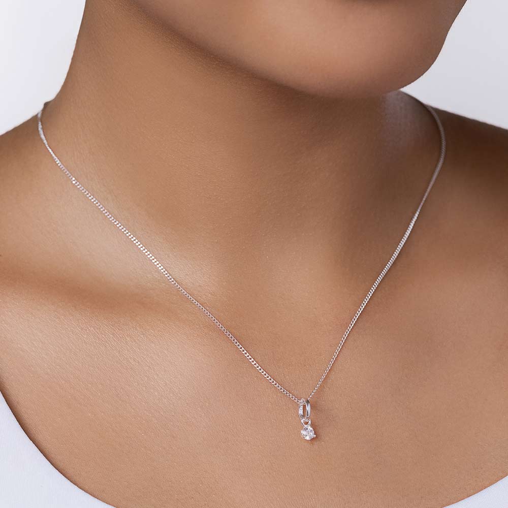 Crafted in solid 925 sterling silver, this elegant solitaire pendant features a single brilliant zirconia measuring 4mm, designed to capture light with refined brilliance and timeless appeal. The pendant measures approximately 1.2cm x 0.4cm (0.47in x 0.16in), offering a delicate yet noticeable presence that pairs beautifully with a variety of chain styles.