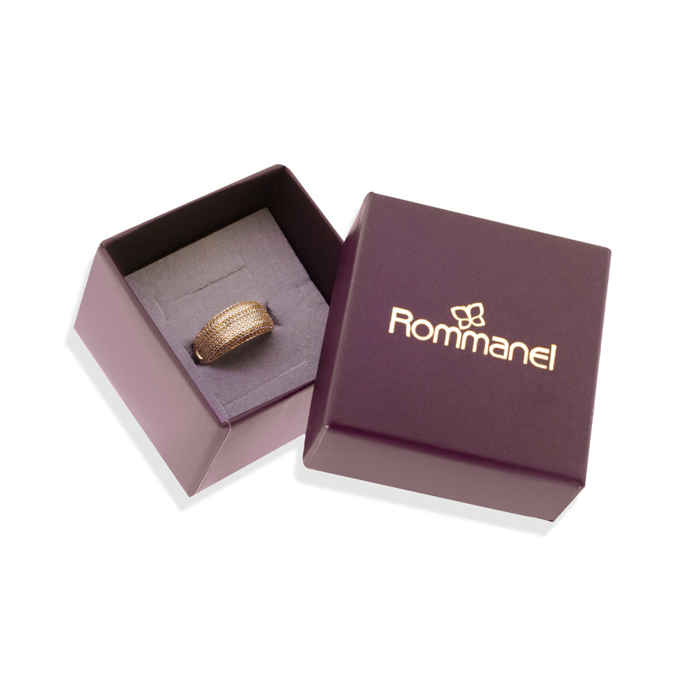 - To avoid forgeries, every Rommanel jewelry receives the identification of our company’s logo - a butterfly. This will be present on the backing of earrings, the inner part of rings, and clasps of chains and pendants.