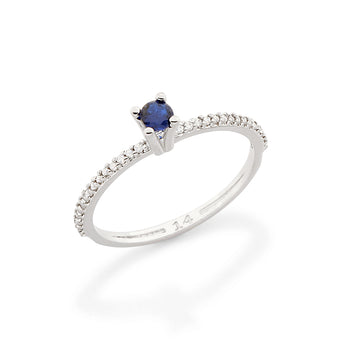 Rommanel's 2020 collection, colors of life, shows us that every color takes us to a special moment, memory, feeling, or experience in our life. by putting all those colors together, we have an amazing understanding and experience of life. in our collection's subcategoy, elegant night, you will find stunnign jewelry for those special moments where you need a touch of elegance. rhodium thin engagement ring studded with thirty (30) white cubic zirconia measuring 0.8mm each and one (1) dark blue cubic zirconia measuring 3mm at the center. | material: rhodium plated. | also available in gold plated. (licensed jewelry collection 2020 - 1st cycle)"