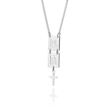 Gourmet Chain Necklace 0.30 mm with Our Lady of Mount Carmel Medal, Sacred Heart Medal, and Hanging Cross.