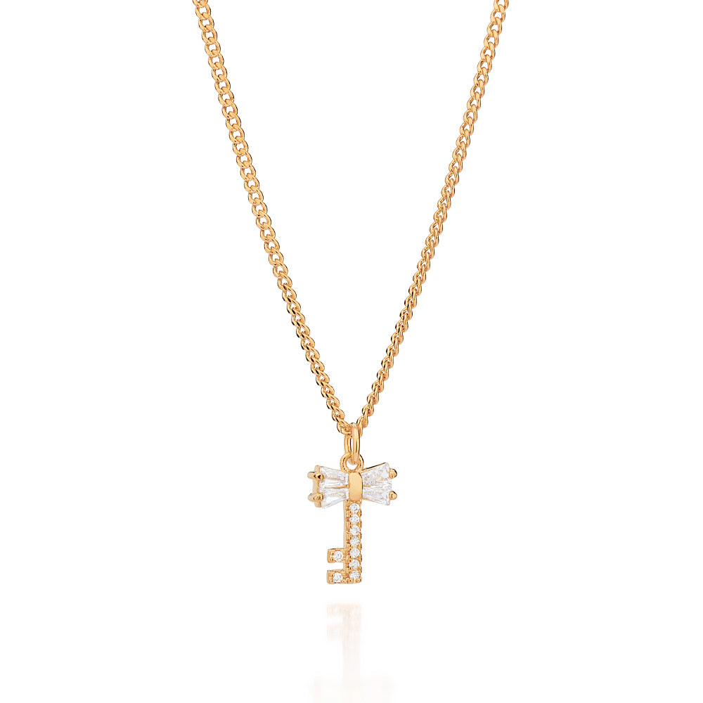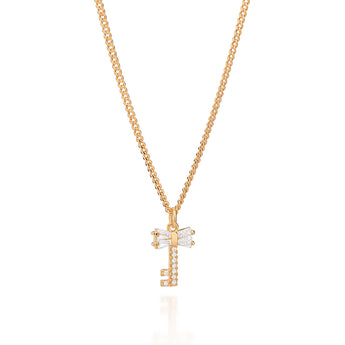 GOLD PLATED KEY PENDANT NECKLACE WITH ZIRCONIA