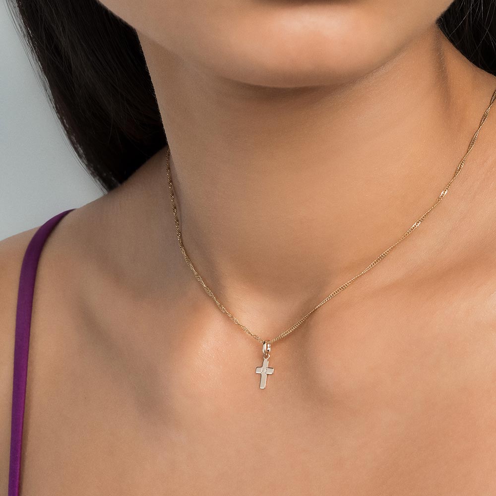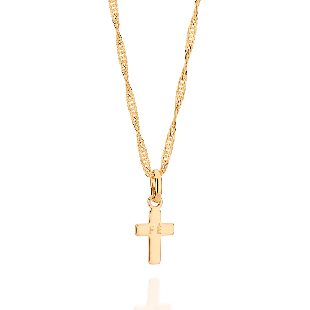 Gold plated pendant in the shape of a cross with the word f㉠(faith) engraved at the center. size: 1.5cm x 0.7cm (0.59in x 0.28in).